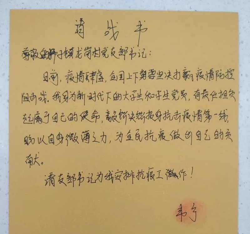 韦宁同学请战书