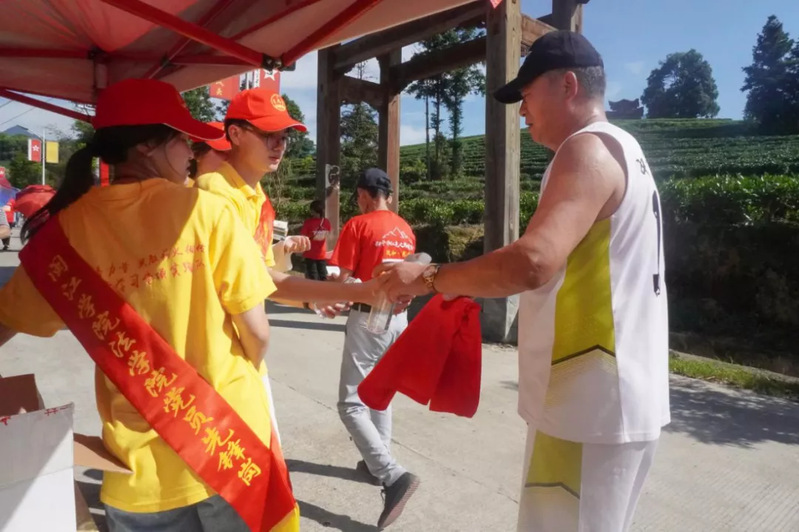 基层法治建设离不开扎实的普法宣传,暖风支教队发挥法学专业优势,助力南平市政和县普法宣传工作,与当地司法所开展合作,用实际行动展现法学学子风采。在今日举行的南平市红色之路健步行中,除了参与竞走的运动健儿们矫健的身影,还有身穿队服,披着服务绶带的暖风队员们在补给站为其分发矿泉水并进行民法典相关的普法宣传。