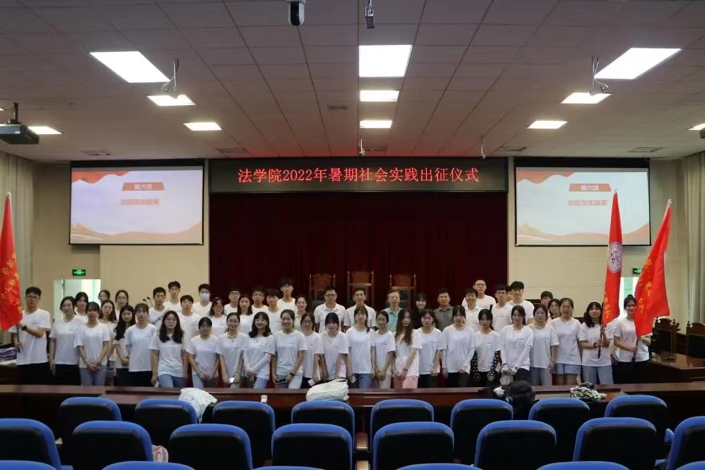 2022年7月1日上午, 韩国成人电影 在模拟法庭举行“喜迎二十大,青年在行动”2022年暑期社会实践活动出征仪式。 韩国成人电影 党委书记郑新胜、副书记何华锋、副院长林安民、教师代表武季亚、各年级辅导员以及参与 韩国成人电影 社会实践项目的全体队员共同参与,出征仪式由 韩国成人电影 团委书记陈鑫老师主持。