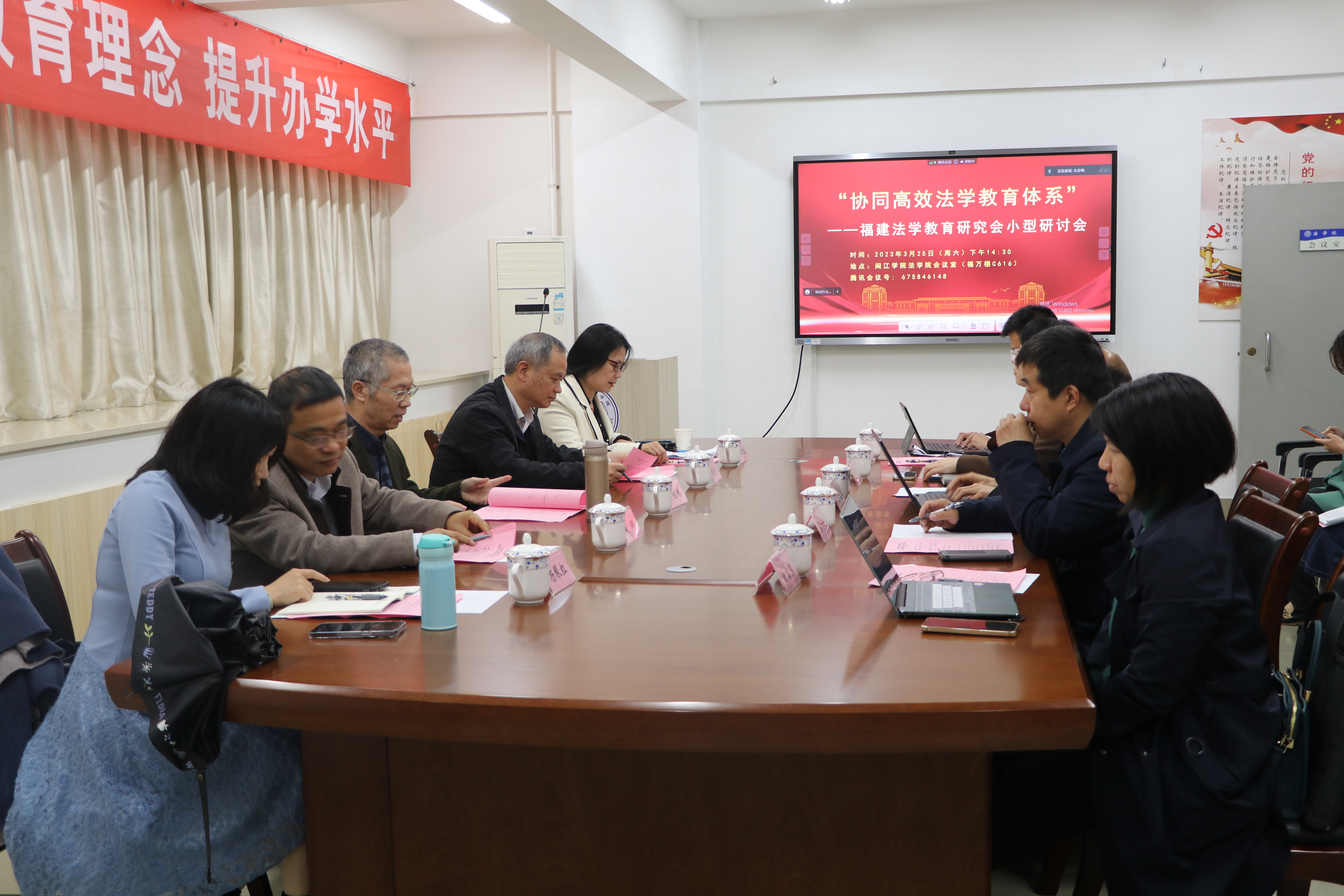 2023年3月25日下午,“协同高效法学教育体系”——福建法学教育研究会小型研讨会在 韩国成人电影 顺利开展。本次研讨会由福建法学教育研究会主办、 韩国成人电影 承办,旨在深入学习贯彻习近平法治思想和全面贯彻落实中共中央办公厅、国务院办公厅印发的《关于加强新时代法学教育和法学理论研究的意见》(以下简称《意见》),创新发展法学教育体系和法学理论研究体系,交流“协同高效法学教育体系”建设的经验,推动我省法学教育更好更快地发展。
