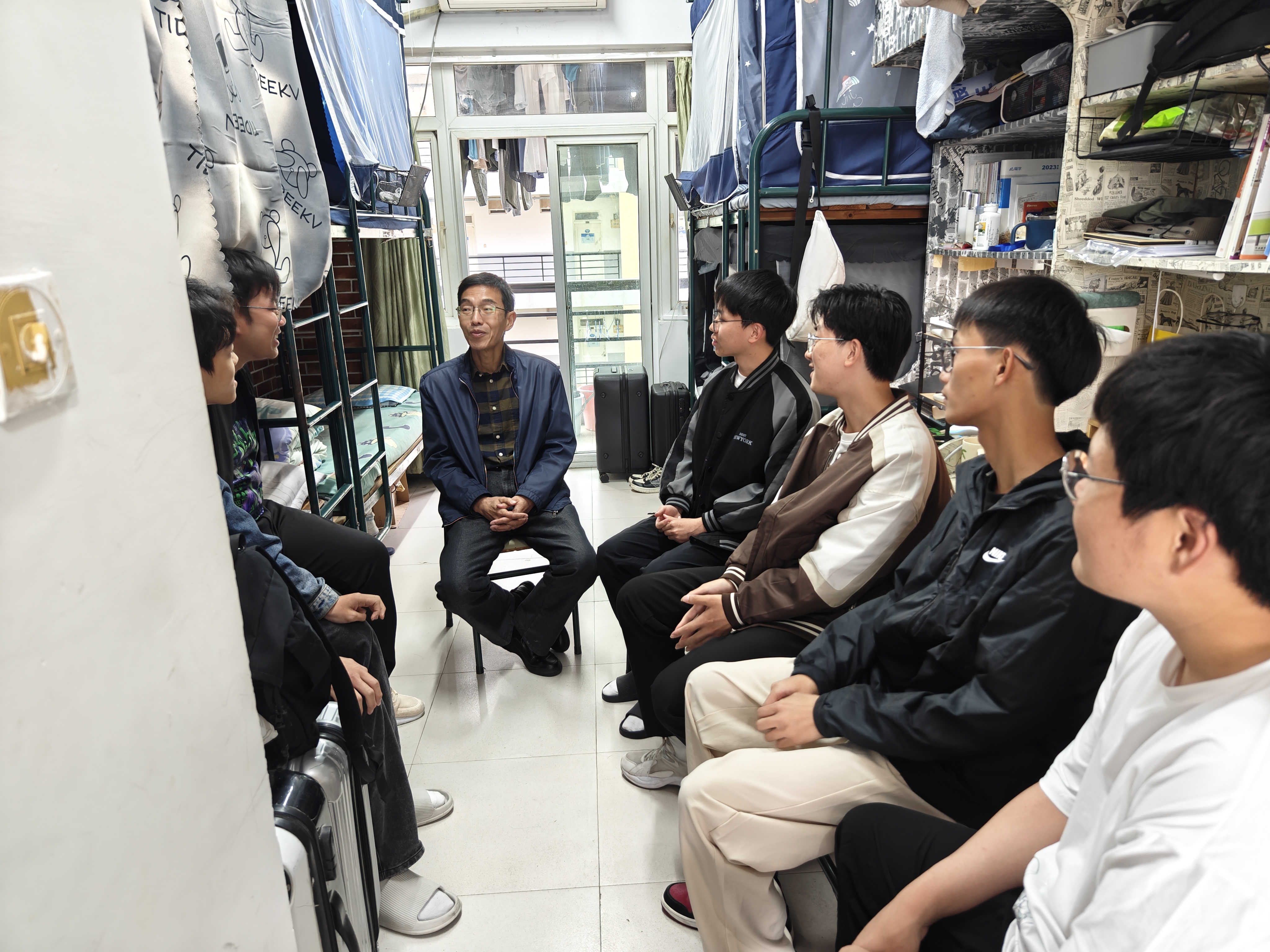 走访过程中,郑新胜书记认真询问了同学们的学习及生活情况,了解同学们的急难所需,围绕如何提高学习效率、如何打造宿舍文化等问题给予了建议和指导。他勉励同学们要注重自身素质的提升,不断完善自己的能力和知识结构,保持积极向上的心态,勇于担当,为将来的发展打下坚实的基础。最后,他提醒同学们时刻注意宿舍用电安全,及时排查安全隐患,争创文明宿舍典范。