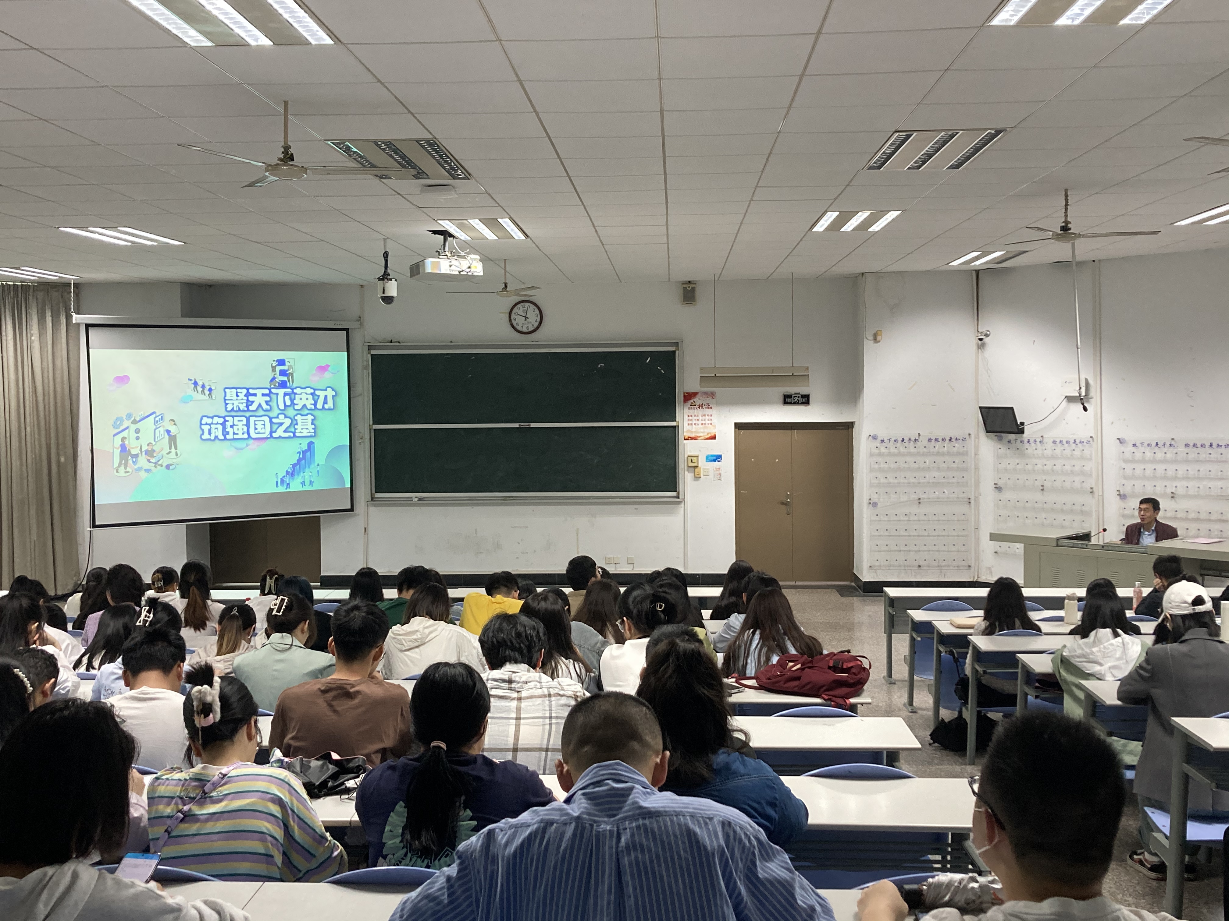 郑新胜书记通过“洞悉大势,人才强国的战略考量”、“立足当下,人才发展迈入新阶段”、“谋篇布局,聚天下英才而用之”三个方面,生动地向同学们阐释了人才作为第一资源对我国经济社会建设的重要意义,讲述了党的十八大以来,我国通过确立人才强国战略布局,人才发展迈入新阶段,以及现阶段为加快建设人才强国作出的重要举措等问题。