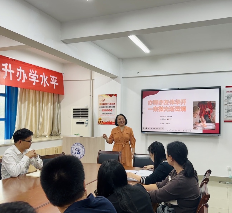 吴喜双老师则以“亦师亦友伴花开,一束微光渐斑斓”为主题,分享她与学生之间的故事。吴喜双老师认为班主任的工作应该本着“教育就是服务”的宗旨,赢得学生的理解和信任。同时,她鼓励其他班主任要学会结合学生情况和工作实际进行不断探索,积极运用新的工作形式和载体,不仅能提升自身的教育实践能力,也帮助学生培养良好品质,磨练坚强意志,为激励学生前行积聚强大力量。