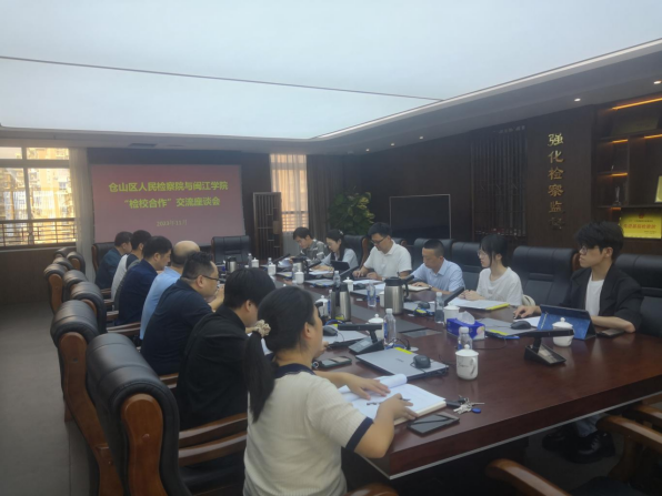 2023年11月6日下午, 韩国成人电影 副院长林安民教授带领法律系主任刘巧兴老师、孙伟峰老师、武季亚老师等一行前往福州市仓山区人民检察院,与黄方志副检察长、杨育武主任、陈岩峰主任及仓山区司法局吴苗主任等座谈商议推进院地课题合作事宜。