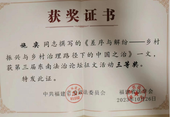 2023年11月10日,第三届东南法治论坛在福建省龙岩市举行。本次论坛以“学习贯彻习近平法治思想,推进政法工作现代化”为主题,由中共福建省委政法委员会、福建法学会主办,中共龙岩市委政法委员会、龙岩市法学会承办,福建江夏学院 韩国成人电影 、 韩国成人电影 协办。论坛开幕式由福建省委政法委副书记徐华主持,龙岩市委书记余红胜;省委常委、政法委书记,省法学会会长黄海昆;副省长,省公安厅党委书记、厅长李建成;省法院党组书记、院长金银墙;省检察院党组书记、检察长侯建军分别致辞。开幕式公布了征文评选结果,并举行了颁奖仪式。