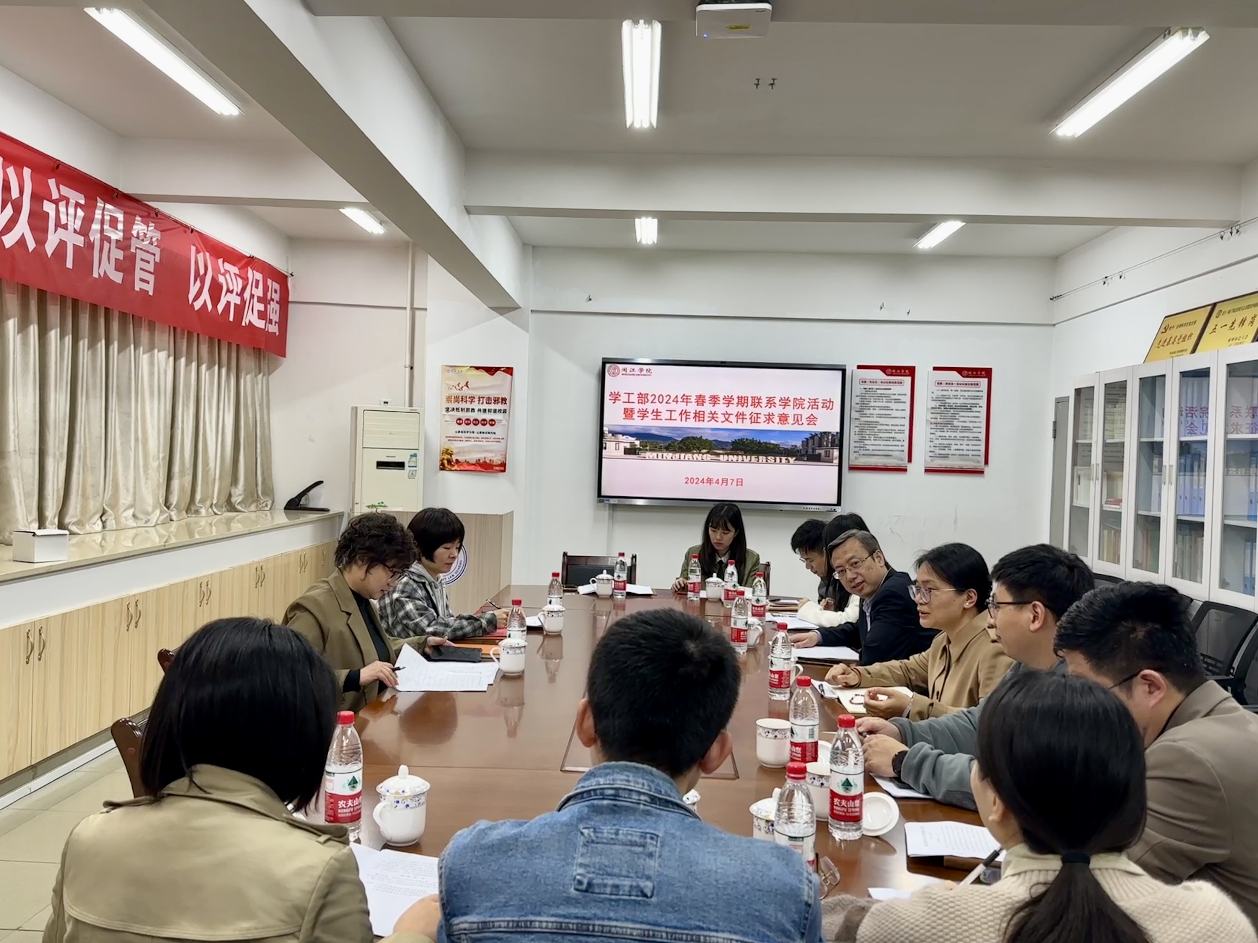 4月7日,校学生工作部联系 韩国成人电影 、物电学院共同召开2024年春季学期联系学院活动暨学生工作相关文件征求意见会。学工部部长杨晓、就业指导中心副主任施孔芳莅临交流指导, 韩国成人电影 党委副书记何华锋、物电学院党委副书记张林雯及两个学院全体思政辅导员参加交流会。