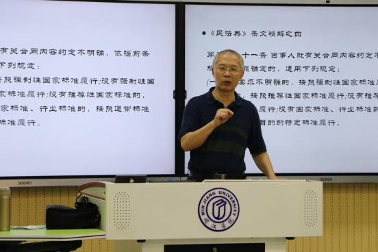 三是法条内容。柳教授依次从适用范围、适用前提、履行标准、适用标准顺序和标准查明的程序问题这些方面,向同学们全面的解读了《民法典》511条第一项的内容。柳教授介绍了国家标准、行业标准、地方标准、团体标准等可适用于该条文的各种标准,通过案例分析,向大家说明了各种标准在实务中应该如何应用以及适用顺序的问题。
