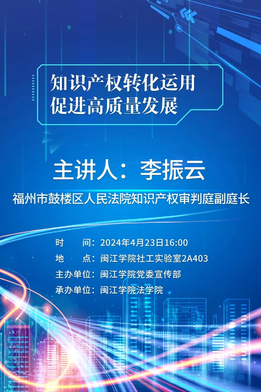 【讲座预告】李振云:知识产权转化应用促进高质量发展