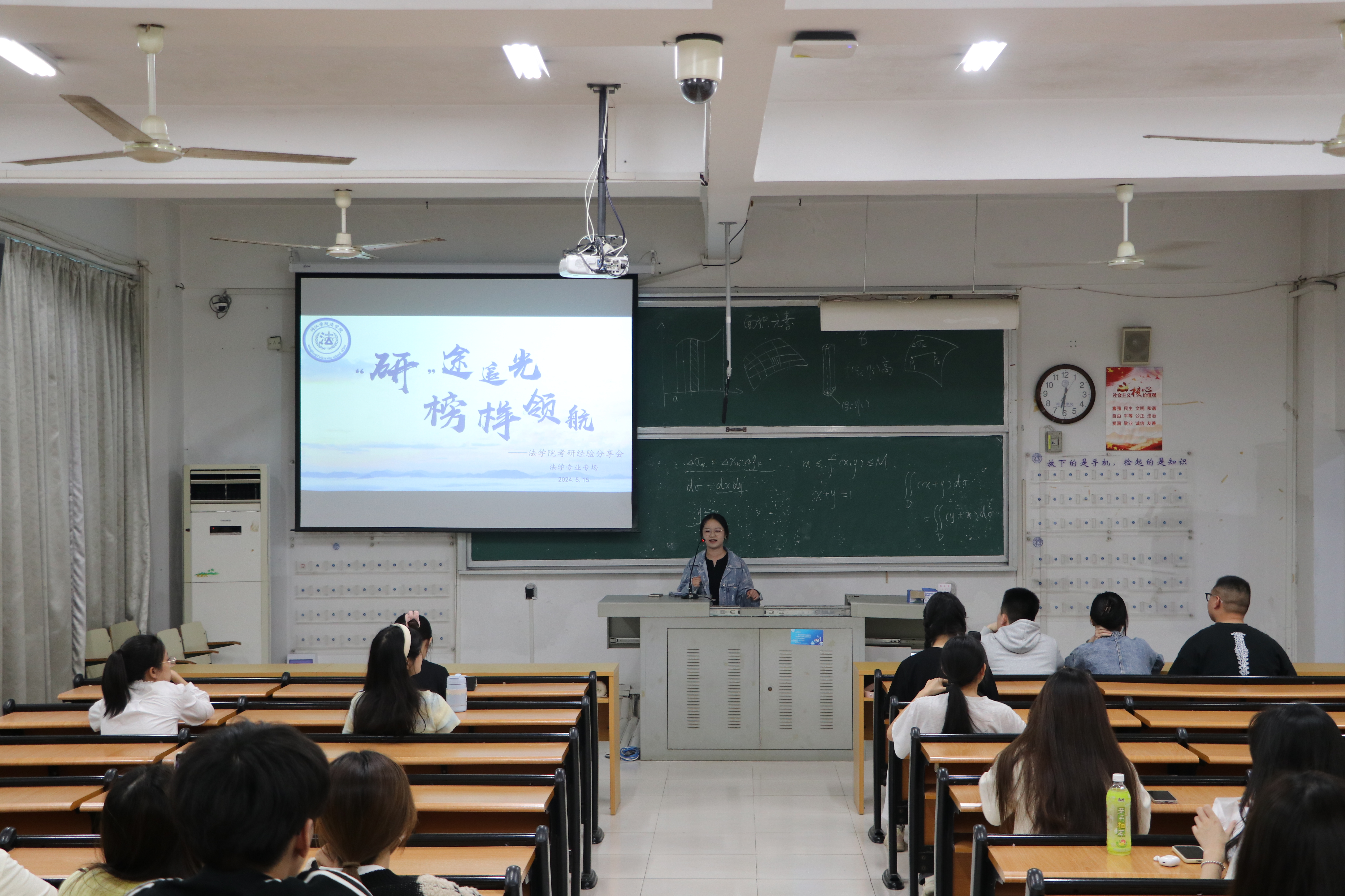 在法学专业分享会现场,张虹逸以“道阻且长,行则将至”为题,鼓励学弟学妹们坚定目标、提升自信;林天炜指出备考期间应持续关注社会热点,特别是相关法律的新修订条款等;叶华福推荐了备考期间使用的优秀课程、书目,建议大家注重真题,追求质量、提升效率;最后,同学建议大家做好学习计划,提升执行力,多反省,早修正,以目的为导向,克服干扰与焦虑。