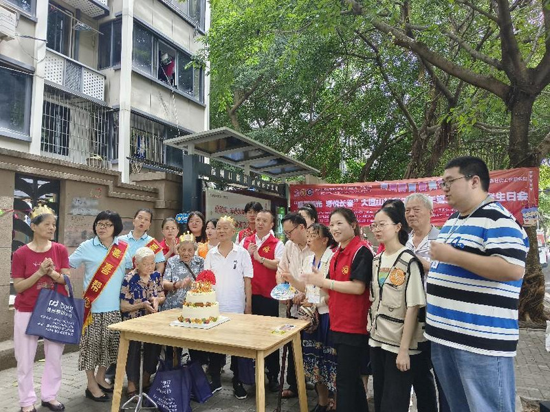 图为同学们和亲邻社工为社区长者庆生 杨亿钱摄