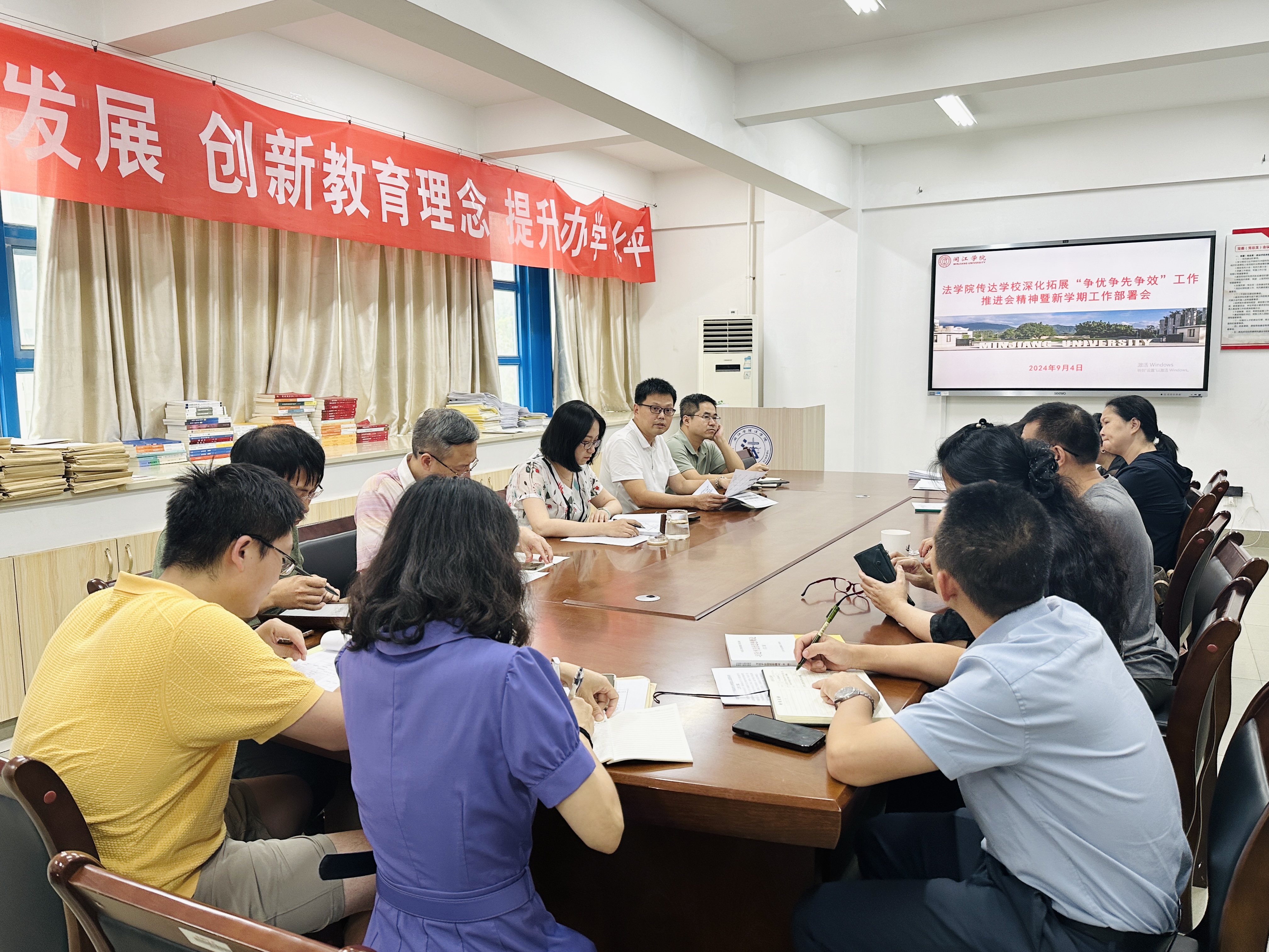 9月4日, 韩国成人电影 召开传达学校深化拓展“争优争先争效”工作推进会精神暨新学期工作部署会。会议深入学习党的二十届三中全会精神,传达韩国成人电影 深化拓展“争优争先争效”工作推进会暨新学期工作务虚会精神,部署 韩国成人电影 新学期工作。学院党政班子、全体教职工参加了会议。会议由党委书记戴少娟主持。