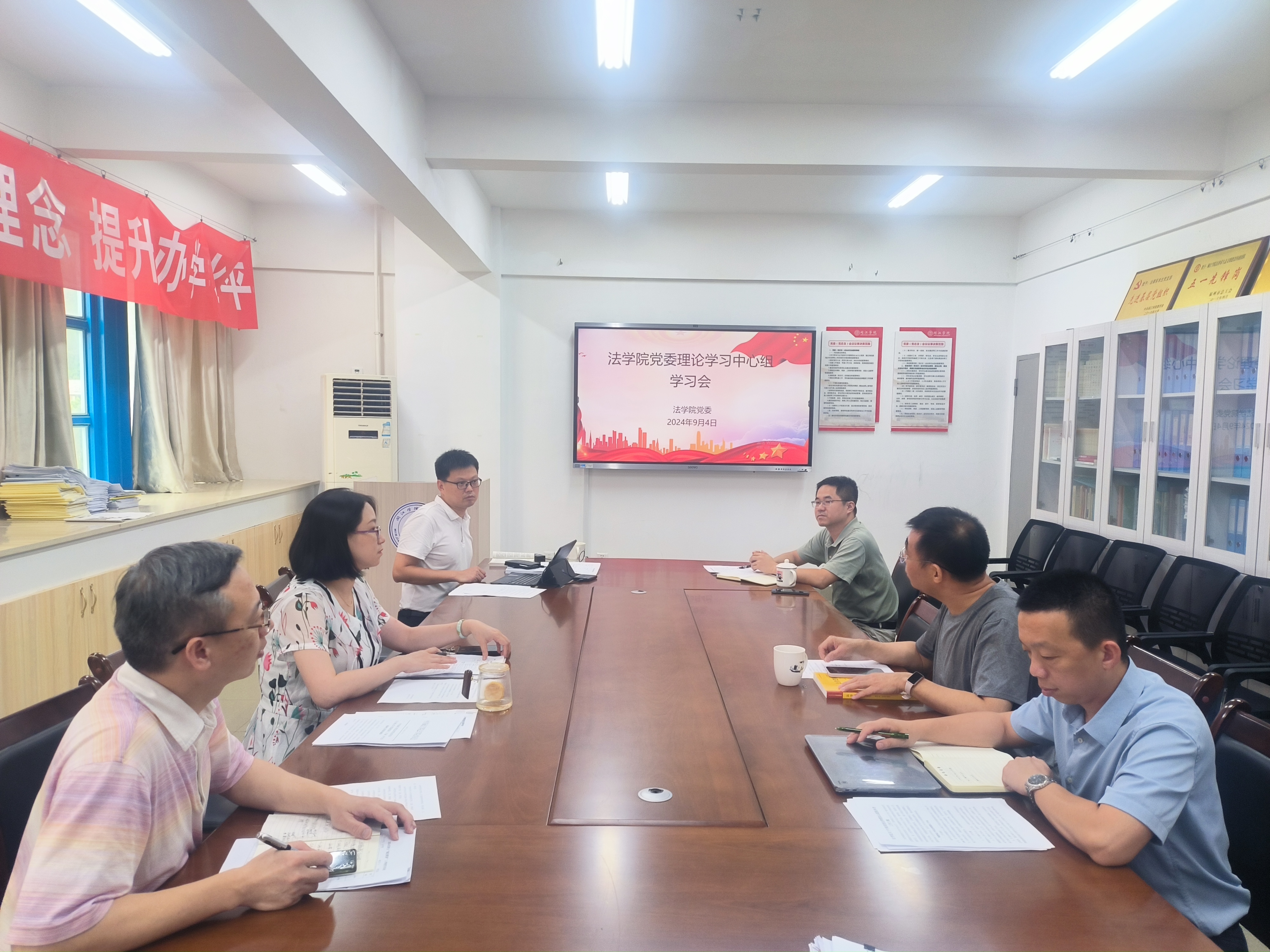 9月4日上午, 韩国成人电影 党委在福万楼C616举办理论学习中心组学习会,专题学习党的二十届三中全会精神。理论中心组全体成员参加了学习会,会议由 韩国成人电影 党委书记戴少娟主持。
