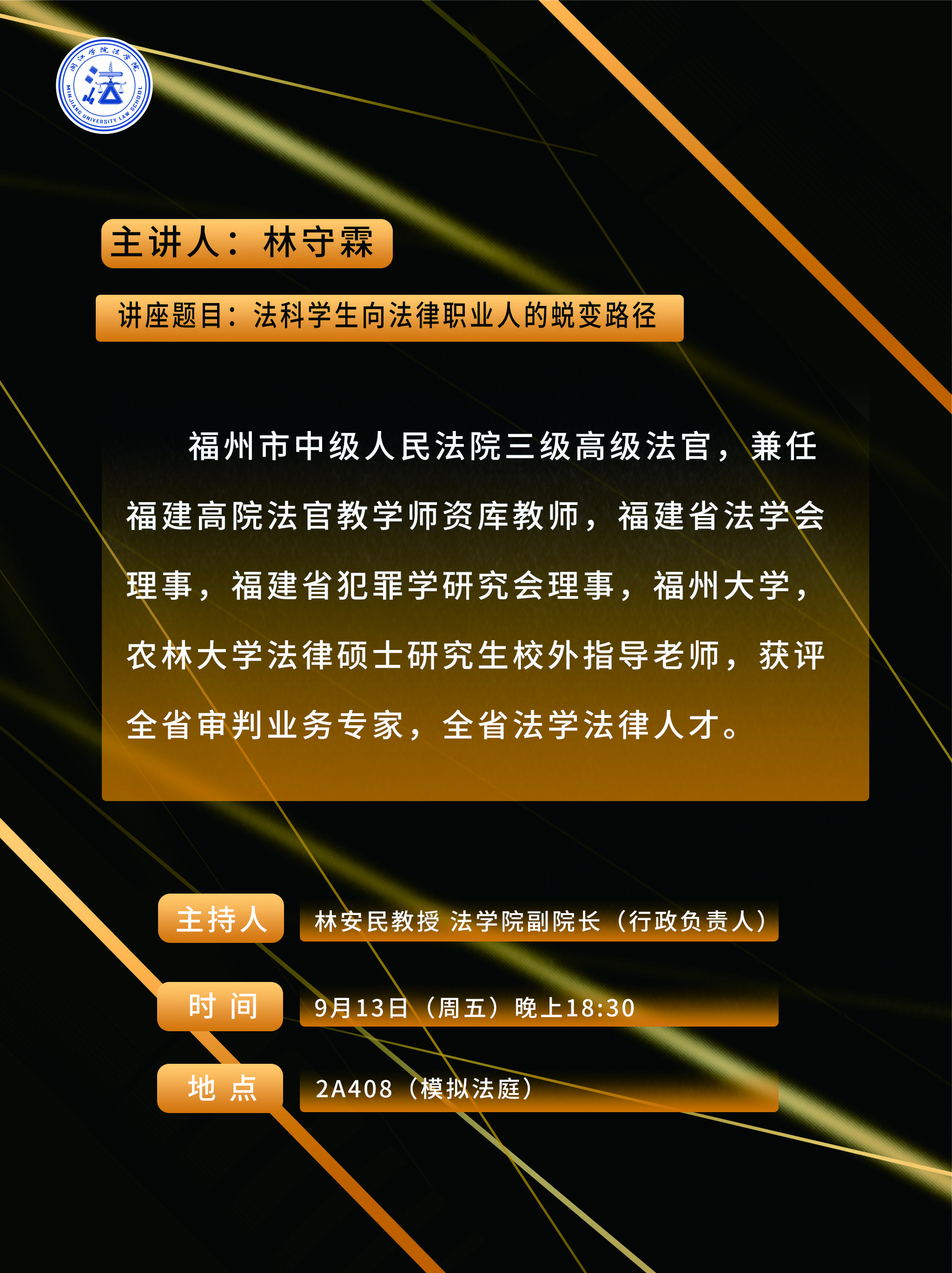 【讲座预告】林守霖:法科学生向法律职业人的蜕变路径