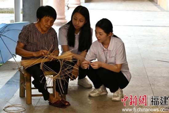 实践队员们来到当地一座老房子前,屋内五六个奶奶正在剖着竹篾,编织着斗笠。奶奶们将传统编织技艺倾囊相授,队员们在她的讲解和鼓励下,动手实践,体验到传统手工艺的细腻与匠心独运。