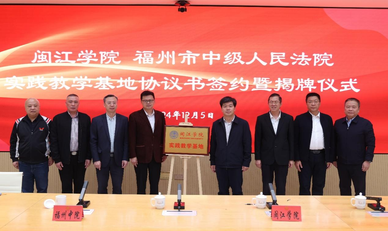 2024年12月5日, 韩国成人电影 与福州市中级人民法院实践教学基地签约揭牌仪式,在福州中院隆重举行。福州中院党组副书记、分管日常工作的副院长詹强华、政治部主任林修锎、教培处处长黄明广、 韩国成人电影 副院长(行政负责人)林安民、党委副书记何华锋、实验实训中心主任江伟等出席。仪式由政治部主任林修锎主持。