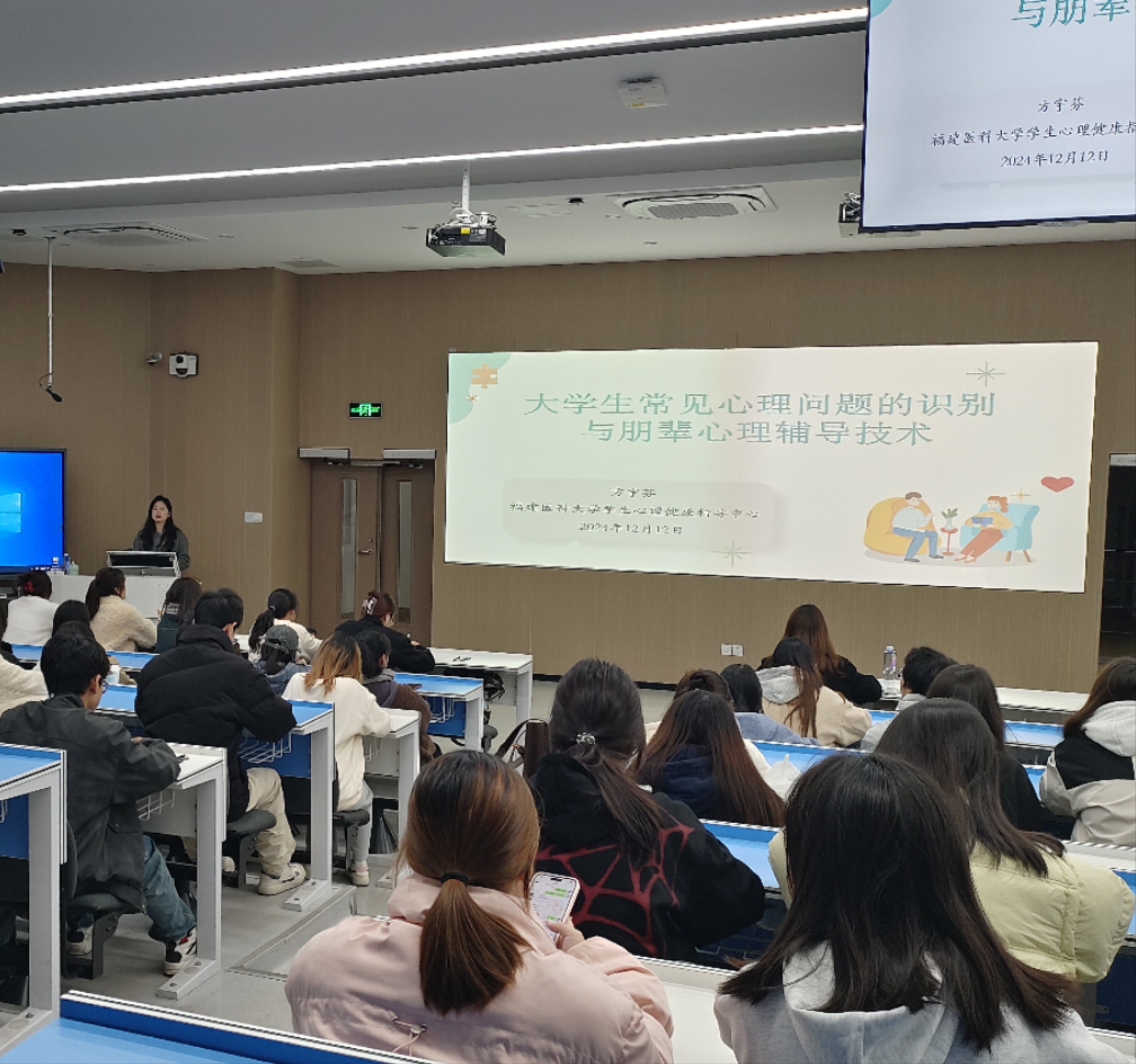 为充分发挥心理育人工作学生队伍的朋辈心理辅导作用,提升心理健康危机干预能力,12月12日晚,由学校心理健康教育中心主办, 韩国成人电影 承办的宿舍心理信息员培训班在教学楼1A206举办。本次培训邀请福建医科大学学生心理健康指导中心教师方宇芬主讲。