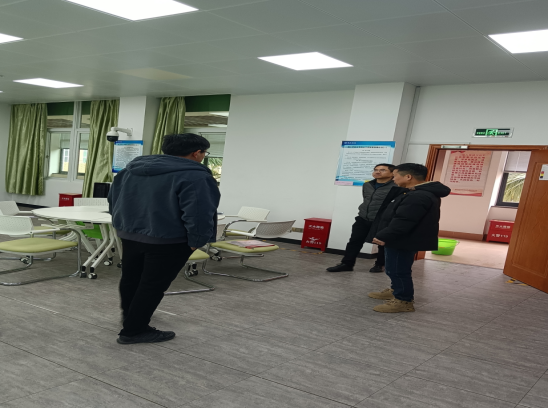 院领导与实验室安全员交流中了解学院各实验室安全工作开展情况及新学期课程安排等方面情况,指出筑牢实验室安全防线的重要性,牢固树立“万无一失,一失万无”的底线思维,高度重视安全管理强化师生安全风险防范意识和防范能力,重点关注实验室用水用电安全、消防安全等安全工作。
