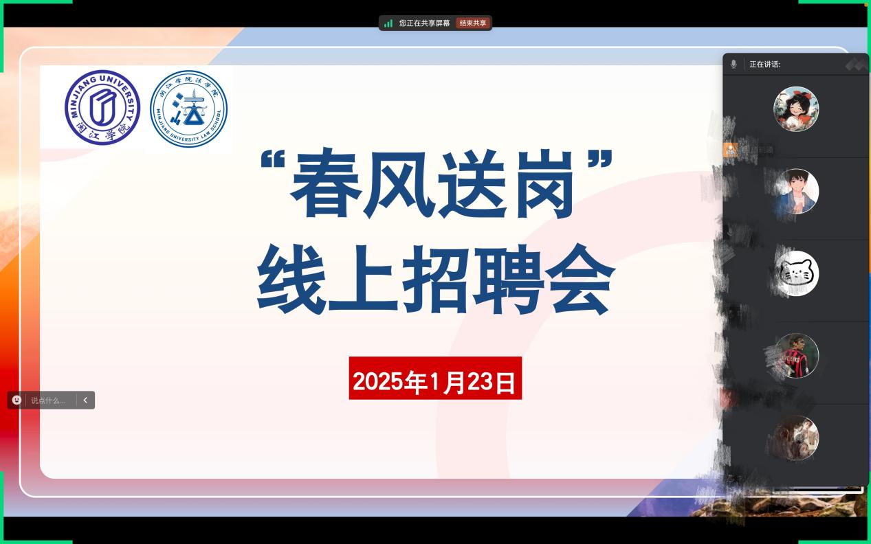 1月23日, 韩国成人电影 开展“春风送岗”线上招聘会,本次招聘会邀请宁德市淳善社会工作服务中心、福建泽良(福州)律师事务所做招聘宣讲, 韩国成人电影 、人文学院、外国语学院毕业生共同参与。
