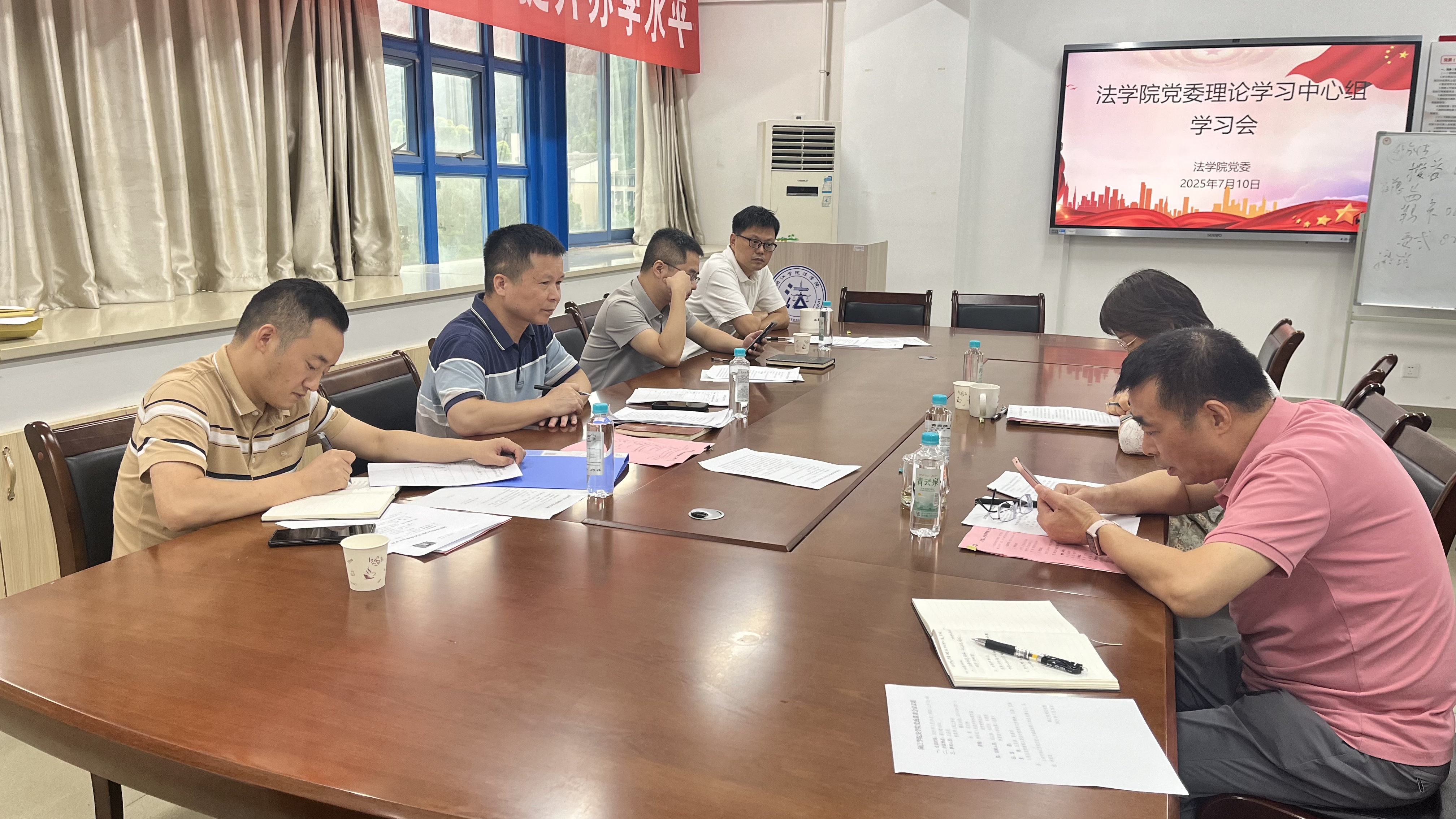 7月10日,院党委召开理论学习中心组学习会,深入学习领会习近平文化思想,旨在将这一重要思想贯彻到学院的立德树人根本任务与各项事业发展中,为学院的高质量发展注入强大的思想动力。学习会由院党委书记王圣洪主持,院党委理论学习中心组全体成员参加。