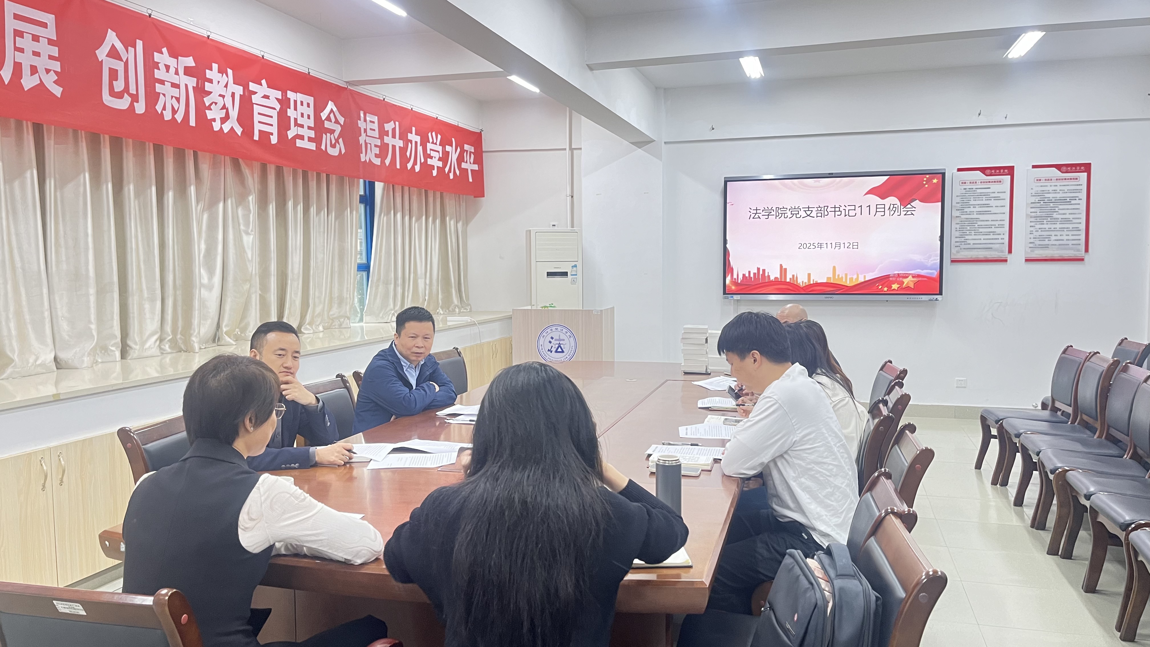会议传达学习党的二十届四中全会精神,会议指出,全会精神为高等教育高质量发展提供根本遵循,全院要迅速掀起学习热潮,领导干部带头示范,依托校园媒体营造氛围,推动学习走深走实。会议要求,要以全会精神为指引,从优化法学及社工专业布局、深化产教融合、推进教育教学体制机制创新、开展法治及社工重点领域有组织科研四方面,推动学院事业内涵式发展,助力“十四五”收官与“十五五”谋划。会议部署了11月党支部核心工作要点。围绕全会精神学习宣传贯彻、发展党员工作提质规范、党组织集中换届准备等七大重点任务,明确了具体要求和时间节点。针对党建“双创”项目申报工作,会议进一步明确要求,重申申报标准与推进时限,强调各支部要以项目申报为抓手,紧扣创建要求补短板、强弱项,夯实组织基础,全面提升党建工作质量。