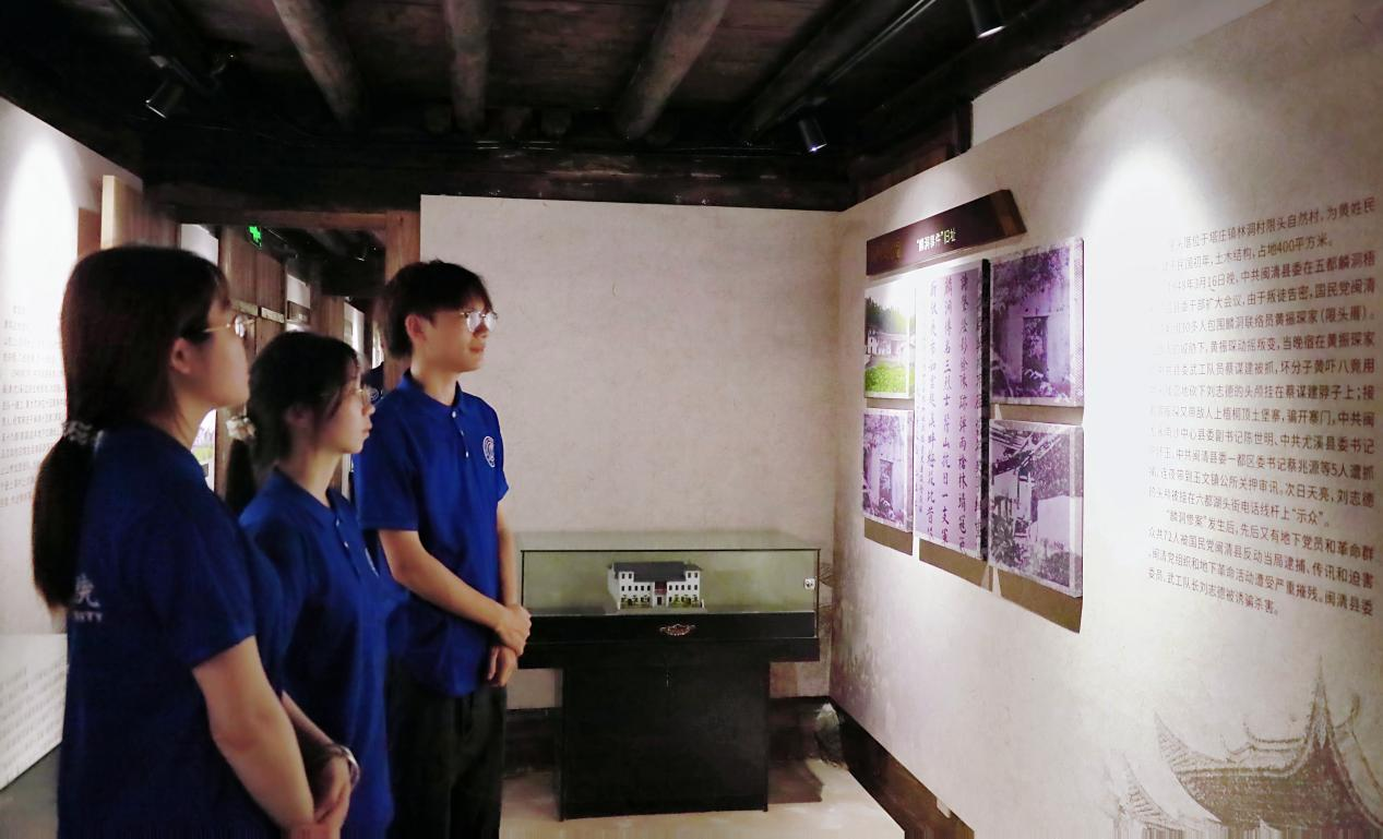 在闽清县东桥镇竹岭村,实践队员参观“竹岭幸福之路”“竹岭造福工程”展馆,追寻领袖足迹。三十年变迁,土坯房变新居,竹岭村从艰难发展到拓展红色文旅,队员邓佳瑜感慨:乡村振兴是变资源为好日子的智慧,是一代代人的坚守。