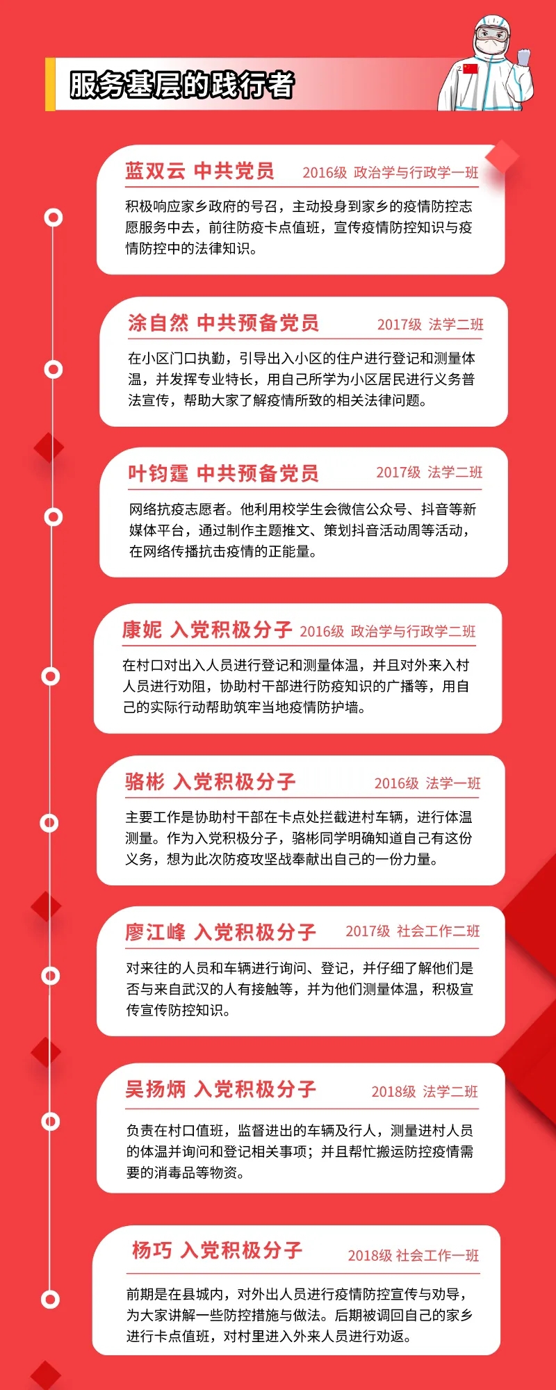 党旗所指,团旗所向。疫情期间, 韩国成人电影 团委发挥引领作用,号召学生要配合防疫工作,在做好自身安全防护的前提下,依法科学有序参与疫情联防联控。 韩国成人电影 涌现了以下青年团员主动投身抗“疫”一线。