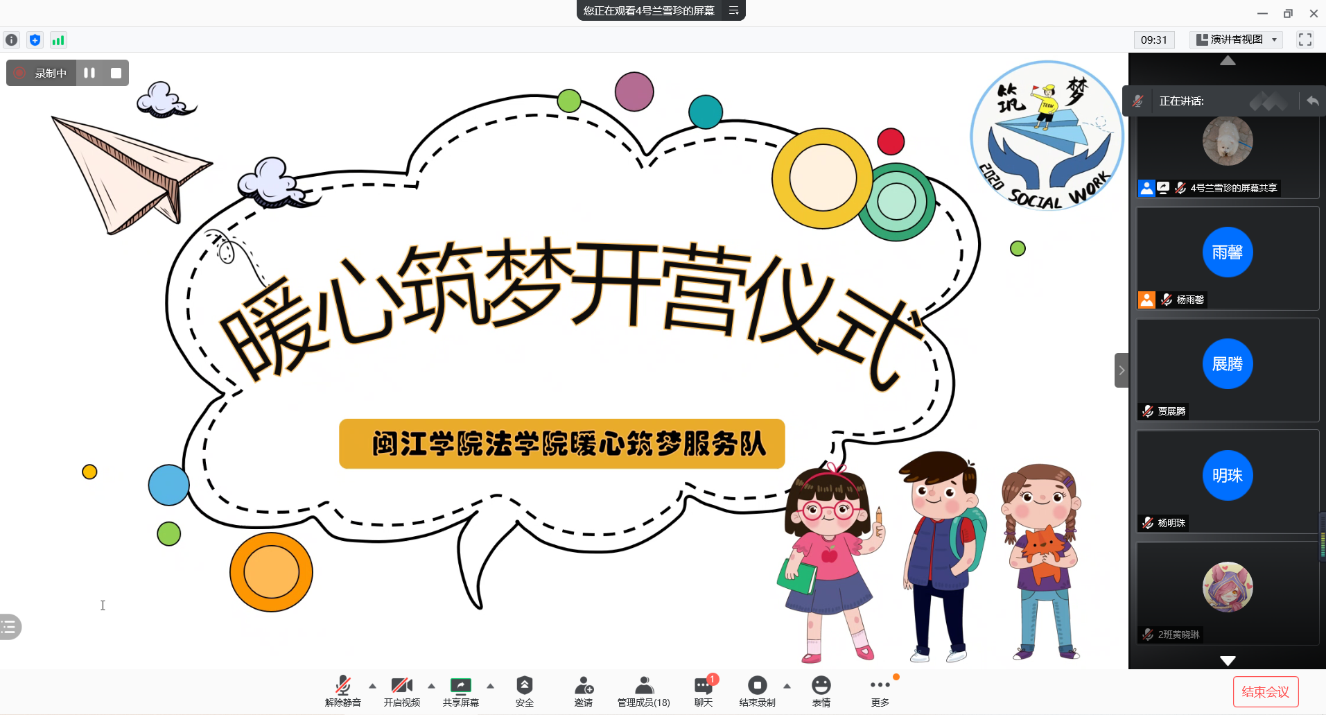 2021年1月30日晚,暖心筑梦服务队与学生家长和同学们在腾讯会议举行了开营仪式,拉开了暖心筑梦服务队线上课程的序幕。