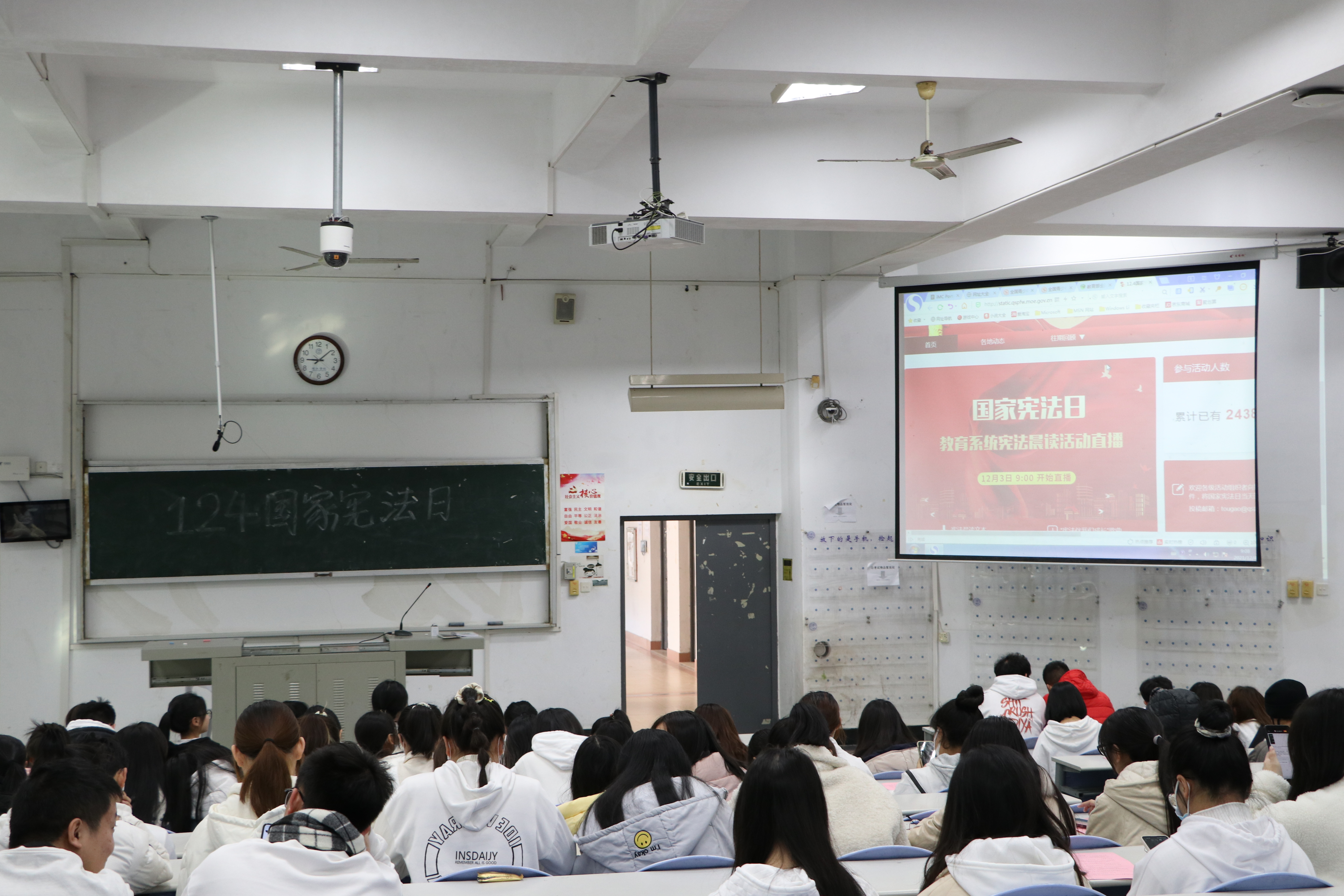 晨读活动结束后,全体同学移步教室观看第八届国家宪法日“宪法晨读”活动的视频录播,进一步感受国家宪法日氛围。
