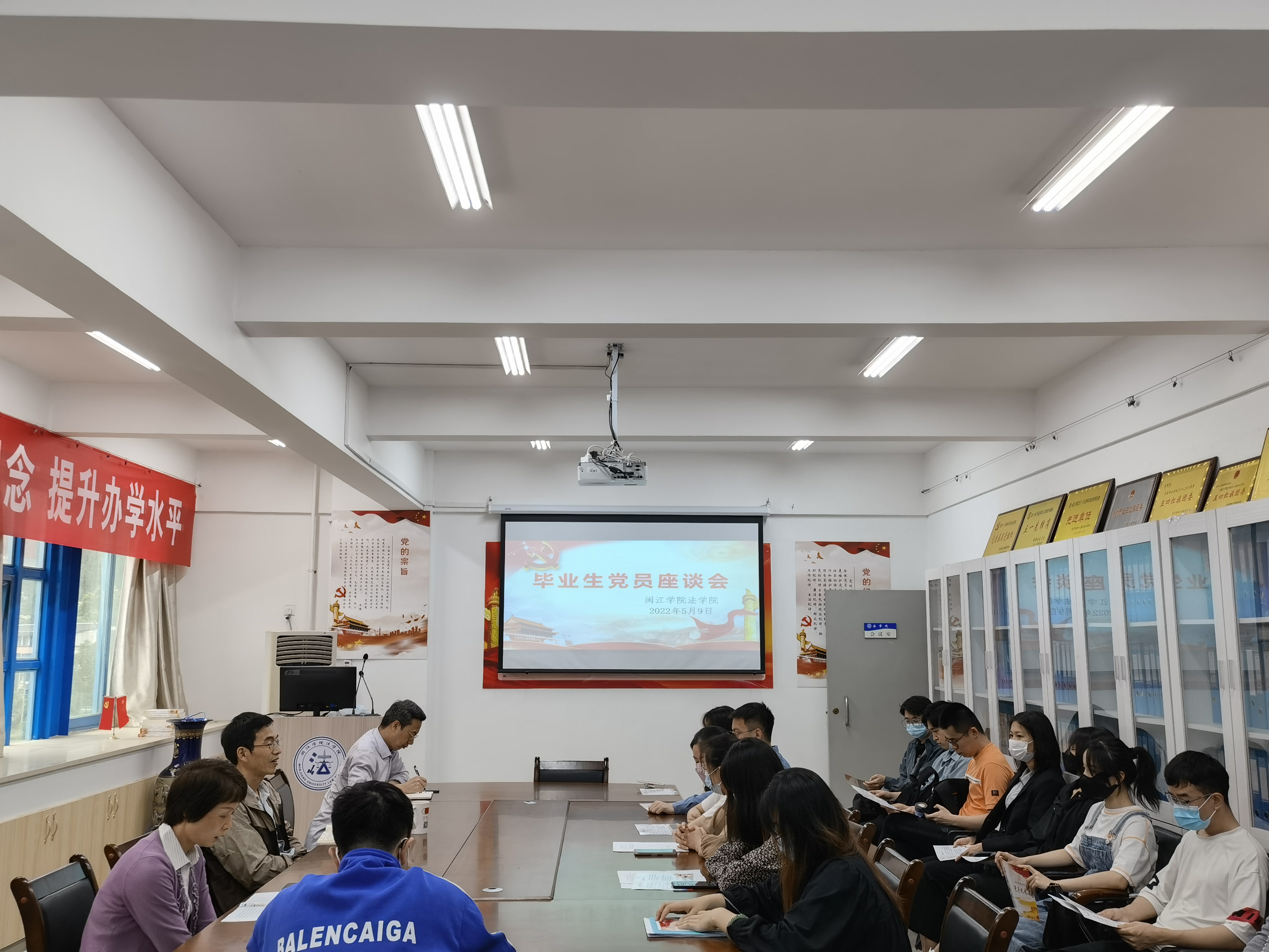 5月9日下午, 韩国成人电影 召开2022届毕业生党员座谈会。 韩国成人电影 党委书记郑新胜、副书记何华锋、组织委员陈菲菲及学生党支部书记林金官、林煜等参加此次座谈会。