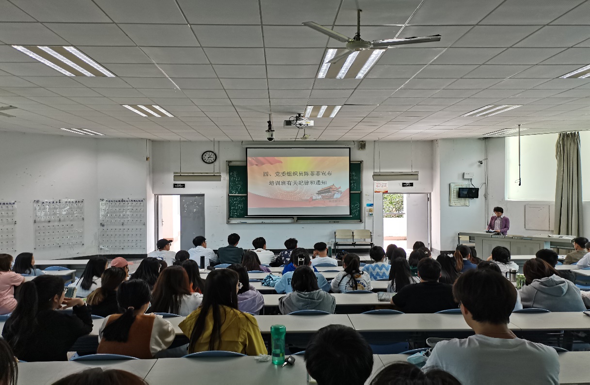 随后,陈菲菲老师宣读了入党积极分子培训班学员须知,强调了课程内容以及相关注意事项。希望要求所有学员自觉遵守管理规定和纪律要求,认真听讲,积极参加讨论,做到学有所得,学以致用。
