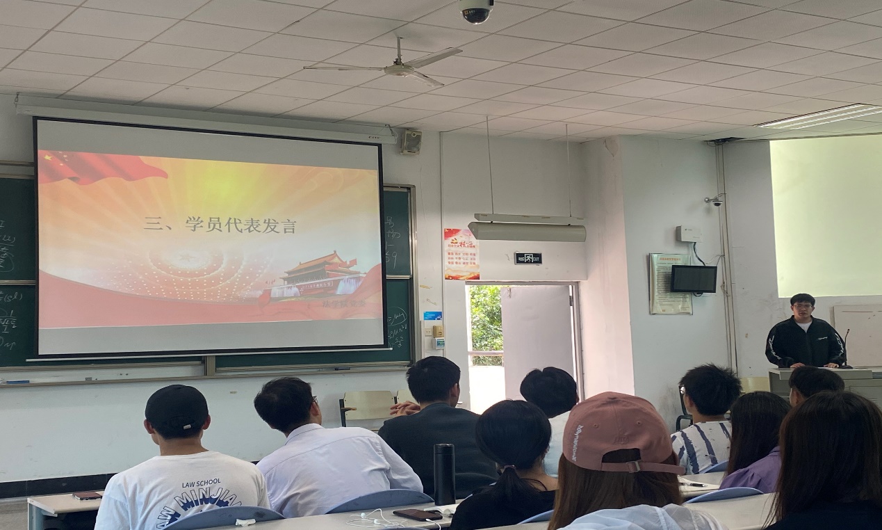2020级白如博同学作为学员代表进行发言。他从对党的认识、党课学习的态度、积极向党组织靠拢的决心等方面发表了自己的看法,号召全体入党积极分子认真学习,坚定理想信念,以高标准严格要求自己,积极向党组织靠拢,争取早日成为一名合格党员。
