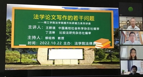 2022年10月22日晚上, 韩国成人电影 提升教师科研能力系列讲座之“法学论文写作的若干问题”通过腾讯会议的形式顺利举办,共三十余人参加。本次讲座由中国高校社会科学杂志编审研究员王群瑛老师担任主讲人, 韩国成人电影 名誉院长柳经纬教授担任主持人, 韩国成人电影 副院长林安民教授代表 韩国成人电影 致辞。