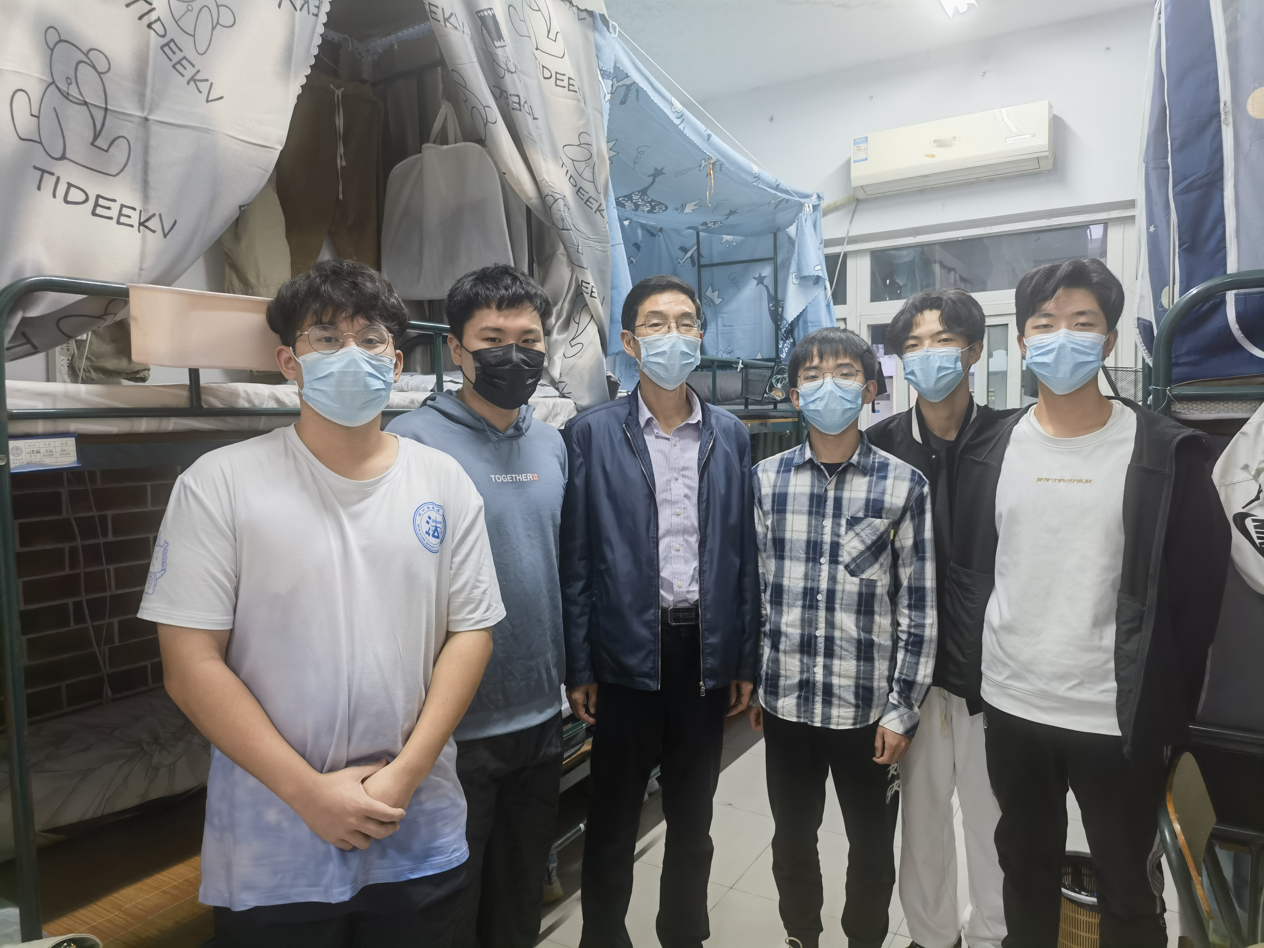 在走访过程中,郑书记提醒同学们要及时关注疫情动向,坚持戴口罩、勤洗手、常通风,做好个人防护与宿舍卫生,要认真遵守学校防疫规定,自觉接受健康监测,配合做好核酸检测,主动及时报告身心健康状况,坚持思想不松懈、行动有实效。此外,郑书记也询问了同学们对线上教学的意见建议,提醒大家要加强自我学习管理,在线学习要注意坐姿和视屏距离,做到劳逸结合,要坚持锻炼身体,保证充足睡眠,增强机体免疫力。