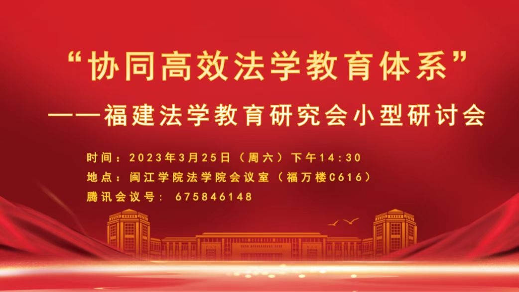 2023年3月25日下午,“协同高效法学教育体系”——福建法学教育研究会小型研讨会在 韩国成人电影 顺利开展。本次研讨会由福建法学教育研究会主办、 韩国成人电影 承办,旨在深入学习贯彻习近平法治思想和全面贯彻落实中共中央办公厅、国务院办公厅印发的《关于加强新时代法学教育和法学理论研究的意见》(以下简称《意见》),创新发展法学教育体系和法学理论研究体系,交流“协同高效法学教育体系”建设的经验,推动我省法学教育更好更快地发展。