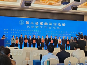 2023年11月10日,第三届东南法治论坛在福建省龙岩市举行。本次论坛以“学习贯彻习近平法治思想,推进政法工作现代化”为主题,由中共福建省委政法委员会、福建法学会主办,中共龙岩市委政法委员会、龙岩市法学会承办,福建江夏学院 韩国成人电影 、 韩国成人电影 协办。论坛开幕式由福建省委政法委副书记徐华主持,龙岩市委书记余红胜;省委常委、政法委书记,省法学会会长黄海昆;副省长,省公安厅党委书记、厅长李建成;省法院党组书记、院长金银墙;省检察院党组书记、检察长侯建军分别致辞。开幕式公布了征文评选结果,并举行了颁奖仪式。