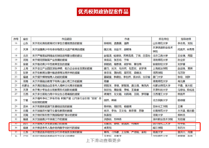 近日,2023年全国青少年模拟政协提案获奖结果公布, 韩国成人电影 2023级法学专业卓英倪同学撰写的《关于推进老年人稳步走向数字化时代的提案》(指导老师:刘巧兴)从全国57.8万余件模拟政协提案作品中脱颖而出,荣获“优秀模拟政协提案作品”,系韩国成人电影 学生作品首次获此殊荣。
