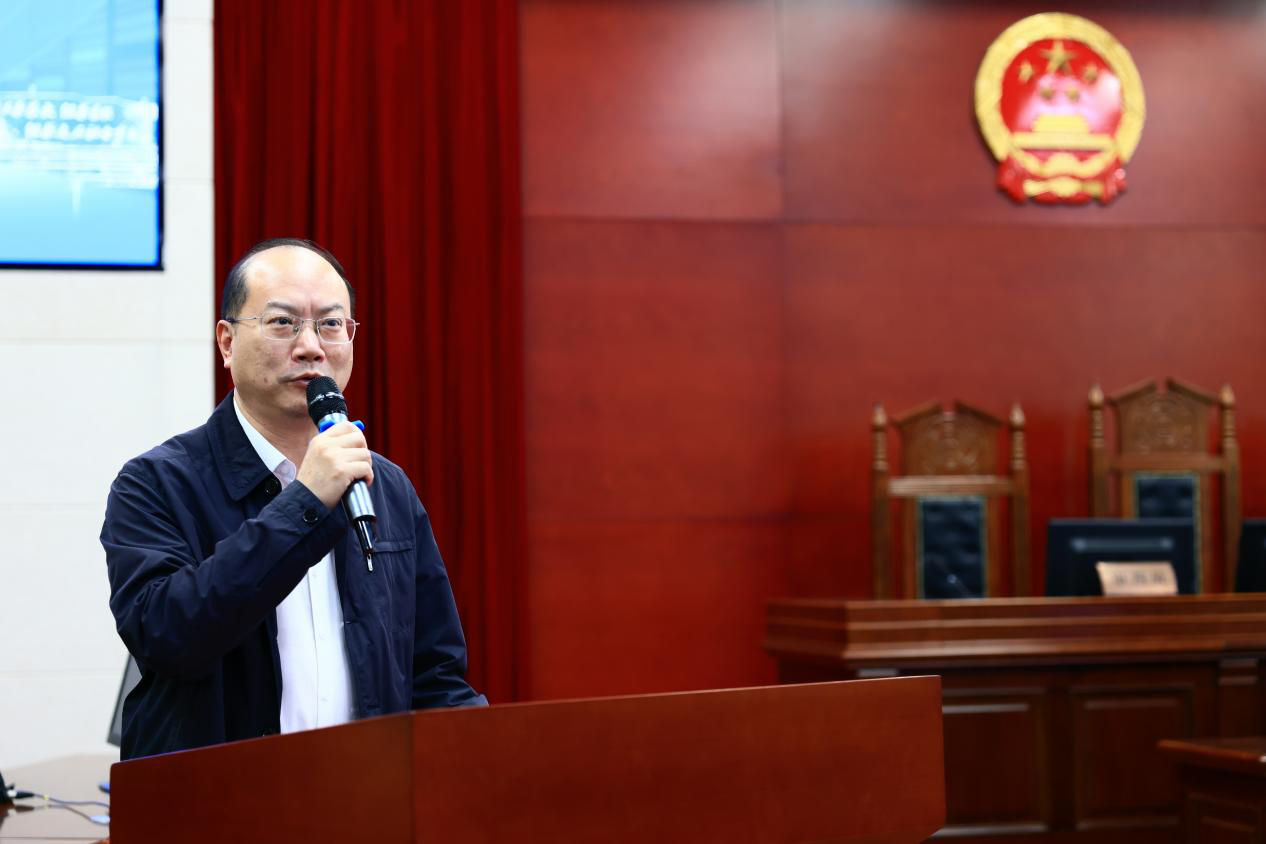 最后,福建省司法厅党委委员、政治部主任、直属机关党委书记高林致辞。他指出本次模拟法庭辩论赛是深入学习贯彻习近平法治思想,强化法学实践教学、深化协同育人机制的集中展示,为我省法学生打造并提供一个讨论法律适用、增强法理交流的平台。他希望同学们以此次辩论赛为契机,在学习生活中提升法律思辨能力,坚持将法学教育与法学实务相结合,为法治福建建设贡献青春力量。