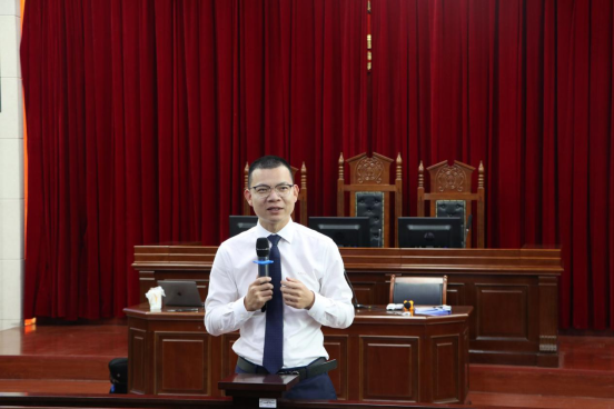 作为一名经验丰富的律师,余振律师则以“构建有力实施,进行有力评价”为切入点,开展以“法庭辩论的有效表达”为主题的分享,深入探讨法庭辩论的重要性及有效方法。他从法庭辩论的目标、路径、表达和技巧训练四个方面展开阐述。他强调了技巧训练的重要性,引导在座的同学们可以利用是否能够被转述这一核心标准来检验自己的表达能力,同时鼓励同学们积极参与模拟庭审和辩论活动,通过实践提升自己的辩论能力和表达水平,为将来成为优秀的法律人才奠定坚实基础。