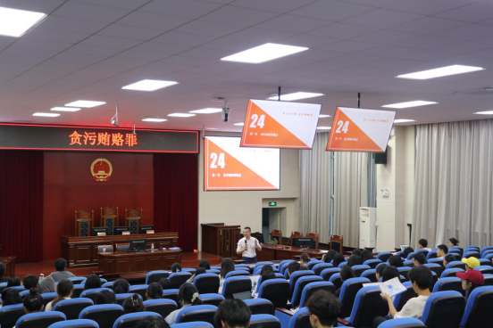 为帮助法科学子深入了解刑法的知识体系,提升理论知识水平与法治素养,6月18日, 韩国成人电影 邀请郑文鑫律师在模拟法庭开展“贪污贿赂罪”主题讲座。本次讲座由 韩国成人电影 副院长林安民(行政负责人)主持,2023级法学专业学生参加讲座。