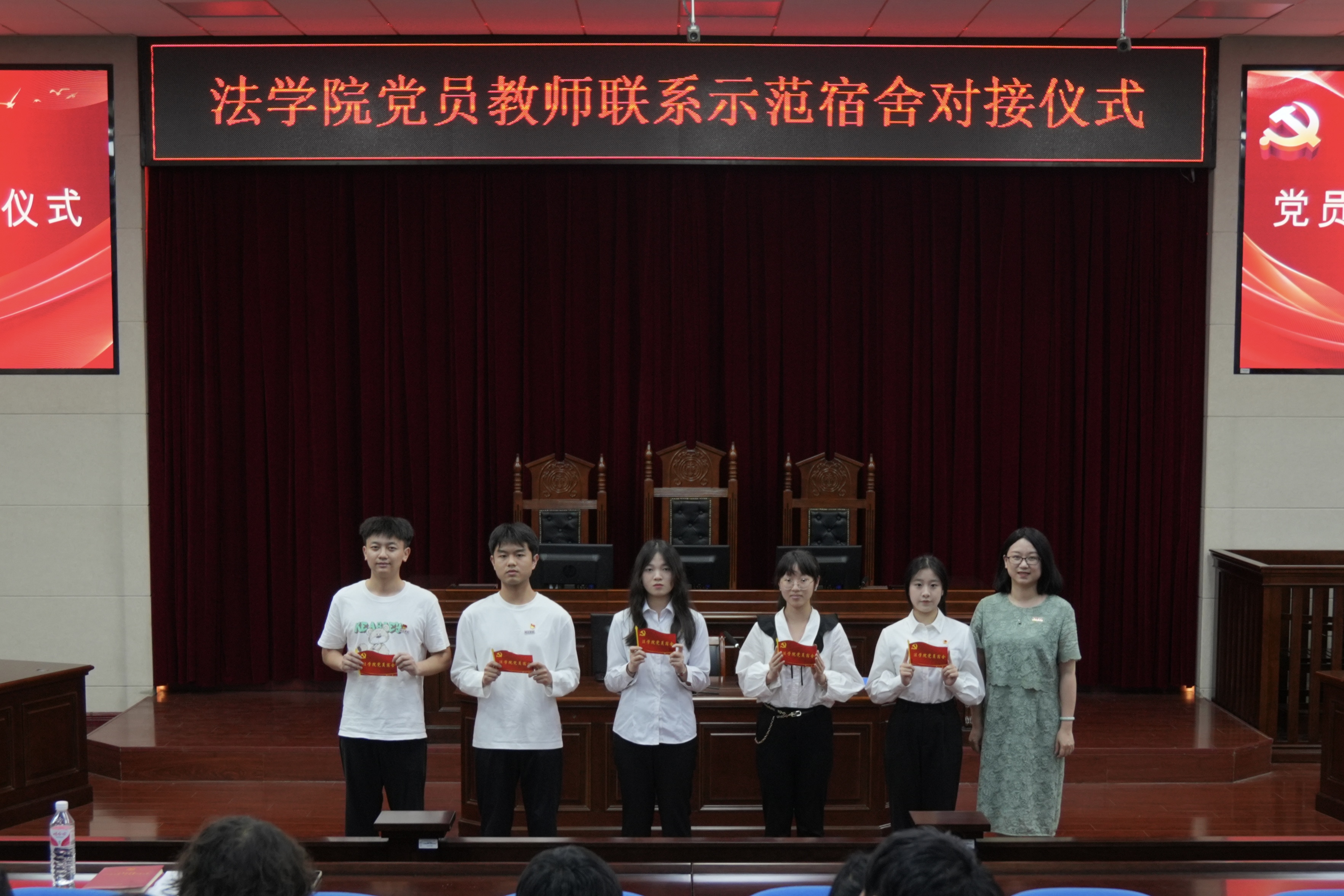 为深入学习贯彻习近平总书记关于教育的重要论述和习近平总书记来校考察调研重要讲话重要指示精神,切实把习近平总书记关于立德树人的重要论述领会到位、落实到位,在“七一”党的生日即将到来之际,在全党开展党纪学习教育的阶段, 韩国成人电影 于6月19日下午在模拟法庭举办党员教师联系学生示范宿舍对接仪式及学生党员示范宿舍授牌仪式。 韩国成人电影 党委书记戴少娟、党委副书记何华锋、党员教师代表、学生党员代表参加了仪式。仪式由 韩国成人电影 党委副书记何华锋主持。