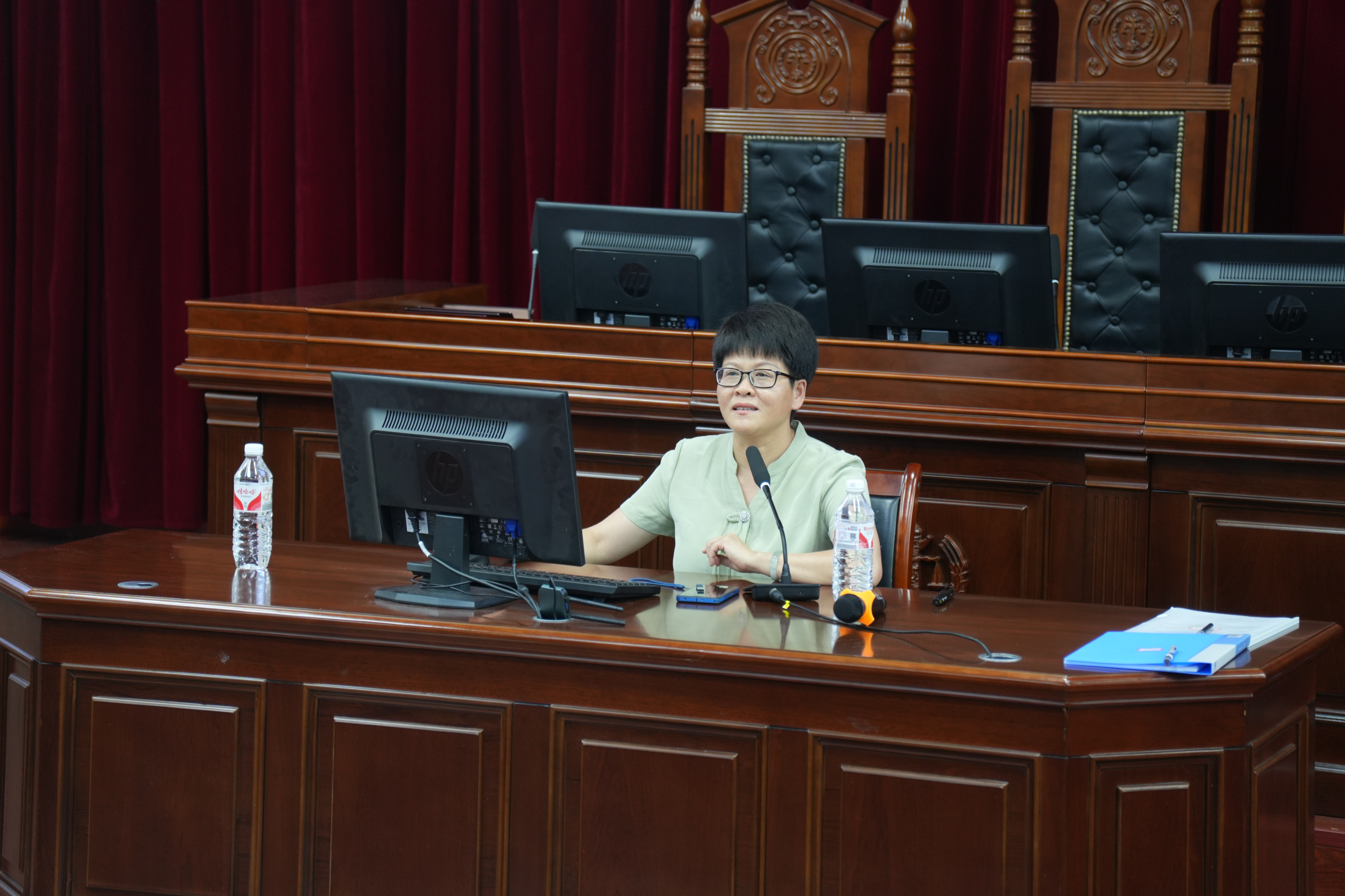 6月19日下午, 韩国成人电影 召开党委理论学习中心组学习(扩大)会,与外国语学院党委联合邀请福建师范大学教授、博士生导师、福建师范大学协和学院院长杨林香,在模拟法庭为 韩国成人电影 、外国语学院全体师生党员及入党积极分子作党纪学习教育专题辅导讲座, 韩国成人电影 党委书记戴少娟主持报告会。