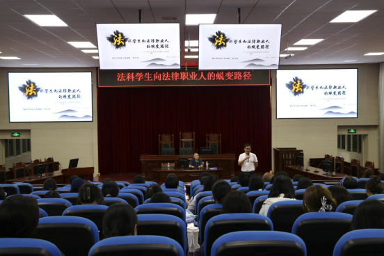 林守霖法官从“法学难就业”话题切入,他指出,法学专业的就业市场激烈,竞争压力大。针对当前就业形势,他结合自身经历和实务经验,鼓励同学们树立理想目标,明确学习目标和方向,踔厉奋发,笃行不怠,为将来成为适应社会需要的应用型人才打下坚实基础。