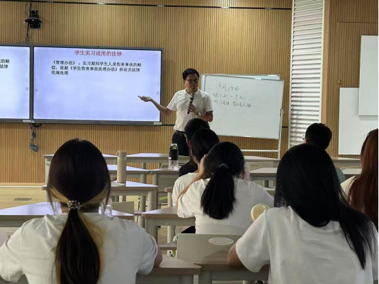 讲座围绕“劳动法律的适用主体”“劳动合同签订时存在的法律风险”“离职过程中应注意的法律问题”三部分展开讲授与分享。同时,举实事实例,以“用人单位”“劳动者”“在校大学生”三视角切入,结合劳动法相关法律,分析用人单位与劳动者在用人、劳动过程中存在的不规范问题,助力学生了解就业风险、树立劳动权益保护意识。
