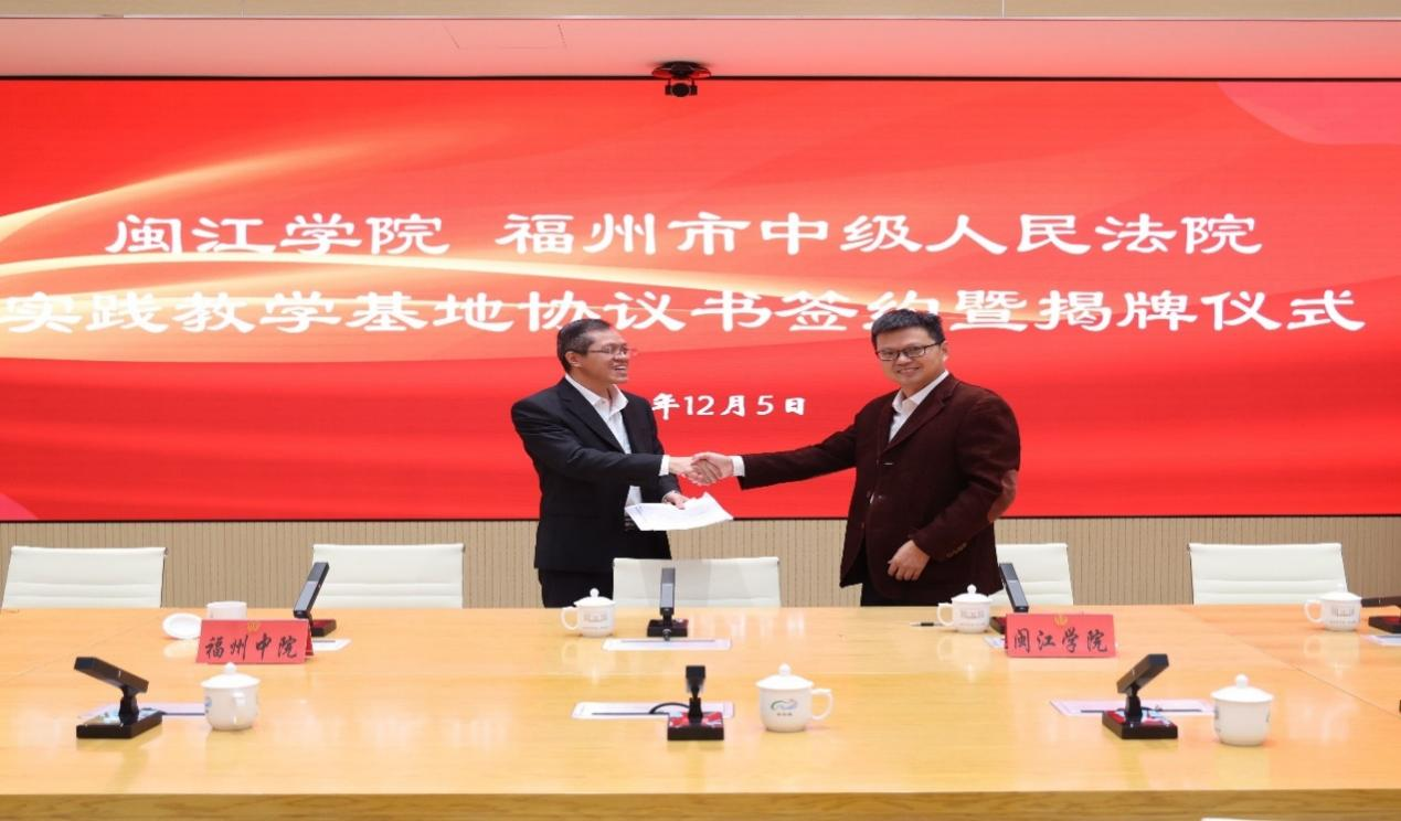 2024年12月5日, 韩国成人电影 与福州市中级人民法院实践教学基地签约揭牌仪式,在福州中院隆重举行。福州中院党组副书记、分管日常工作的副院长詹强华、政治部主任林修锎、教培处处长黄明广、 韩国成人电影 副院长(行政负责人)林安民、党委副书记何华锋、实验实训中心主任江伟等出席。仪式由政治部主任林修锎主持。