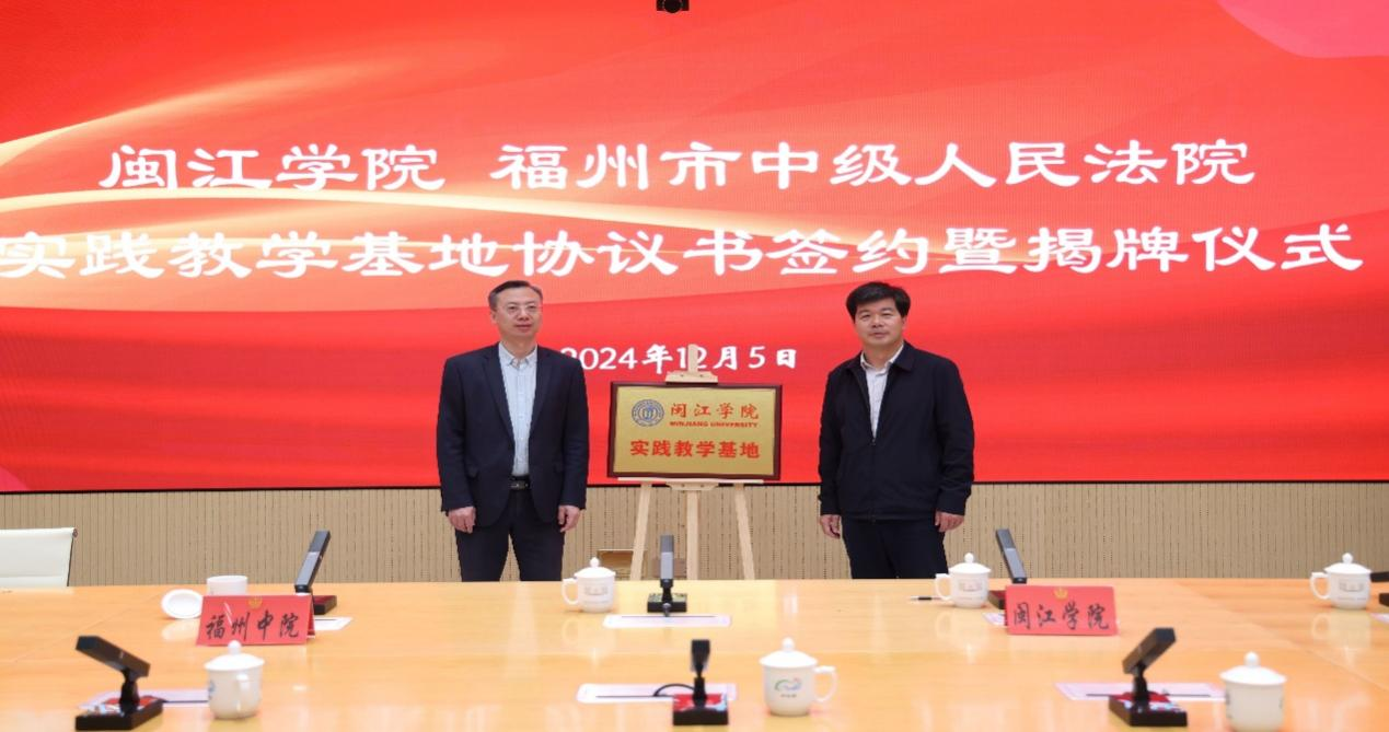 2024年12月5日, 韩国成人电影 与福州市中级人民法院实践教学基地签约揭牌仪式,在福州中院隆重举行。福州中院党组副书记、分管日常工作的副院长詹强华、政治部主任林修锎、教培处处长黄明广、 韩国成人电影 副院长(行政负责人)林安民、党委副书记何华锋、实验实训中心主任江伟等出席。仪式由政治部主任林修锎主持。