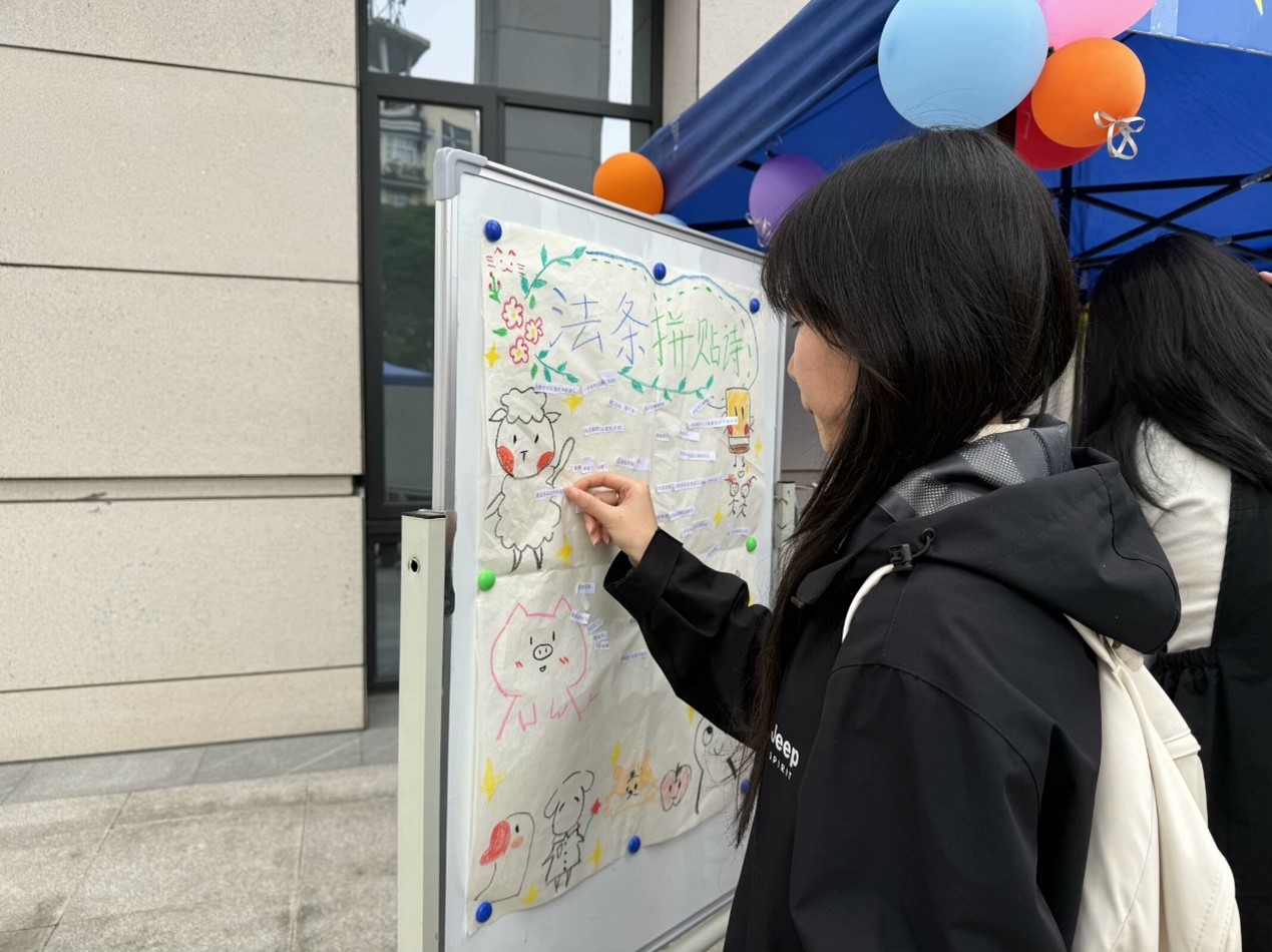 本次志愿者日主题活动,活动现场运用本学期志愿活动照片加以装饰,为整个场景增添了一抹温馨与活力。现场设置了多种趣味互动游戏。“律法万千,拾字成诗”活动中,各种法律条文汇聚于此,创意组合,思维碰撞。“乘风破浪,一战到底”活动中,参与者们快速抢答志愿服务相关知识。“信息筛选,智趣对决”活动中,进一步考验了团队协作精神。最后,“头脑风暴,连词成句”活动中,同学们借助自身的逻辑思维能力,排列组合乱序的语词,形成意义不凡的语段。