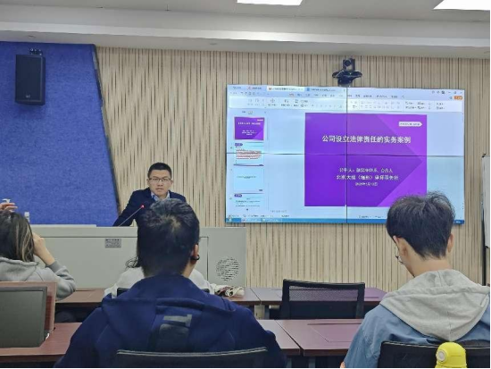为了提高法学专业学生的实践技能,3月13日, 韩国成人电影 邀请校外实践导师北京大成(福州)律师事务所合伙人颜宗冷律师为2023级法学专业的学生于国际商法实验室开展“公司设立法律问题”系列专题讲座。