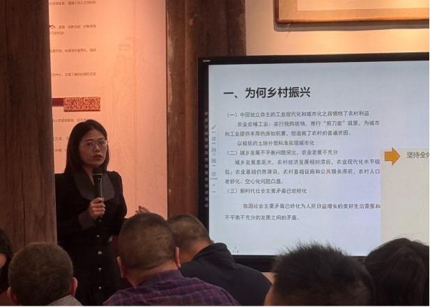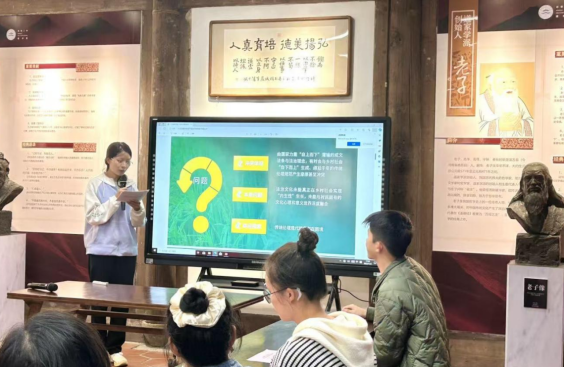 在学生分享环节中,23级创新班郑周铮同学基于暑期驻村调研的成果,分享了自己关于义姑文化传承的法治意蕴与当代价值的研究与见解。习近平法治思想读书社成员24级创新班王艺珺以村史馆、家风堂为例分享了“三治融合”视域下传统伦理的现代转换。
